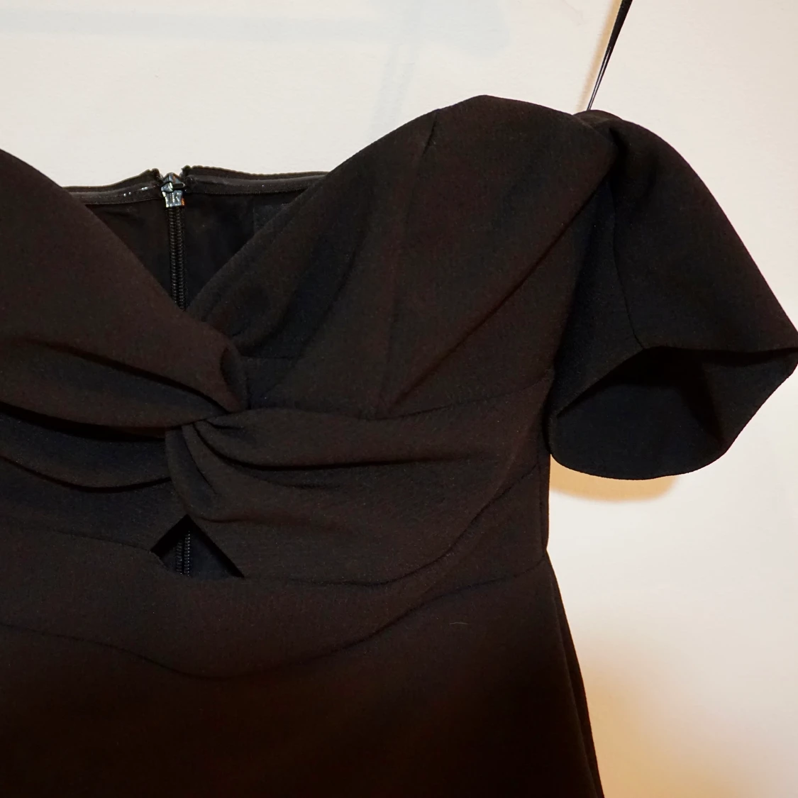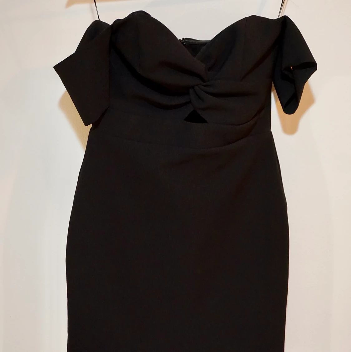 Svart minidress från River Island Petite, strl 34. Klänningen är axelbandslös men har ett ”gummiband” som gör att den sitter uppe väl. Är gjord i stadigt men stretchigt tyg. Felfritt skick, aldrig använd av mig, bara provad.
