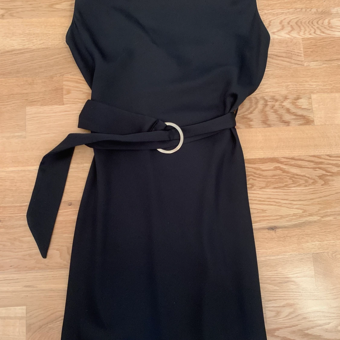 Satin klänning med bälte köpt från river island. Oanvänd, prislappen är kvar. Storlek 34. Super fin nu till sommarn. Bilderna ger ingen rättvisa. Jag ser nu i efterhand att hela klänningen inte syns men jag kan skicka fler bilder till den som vill ha. Det är smala spaghetti Axel band ☺️