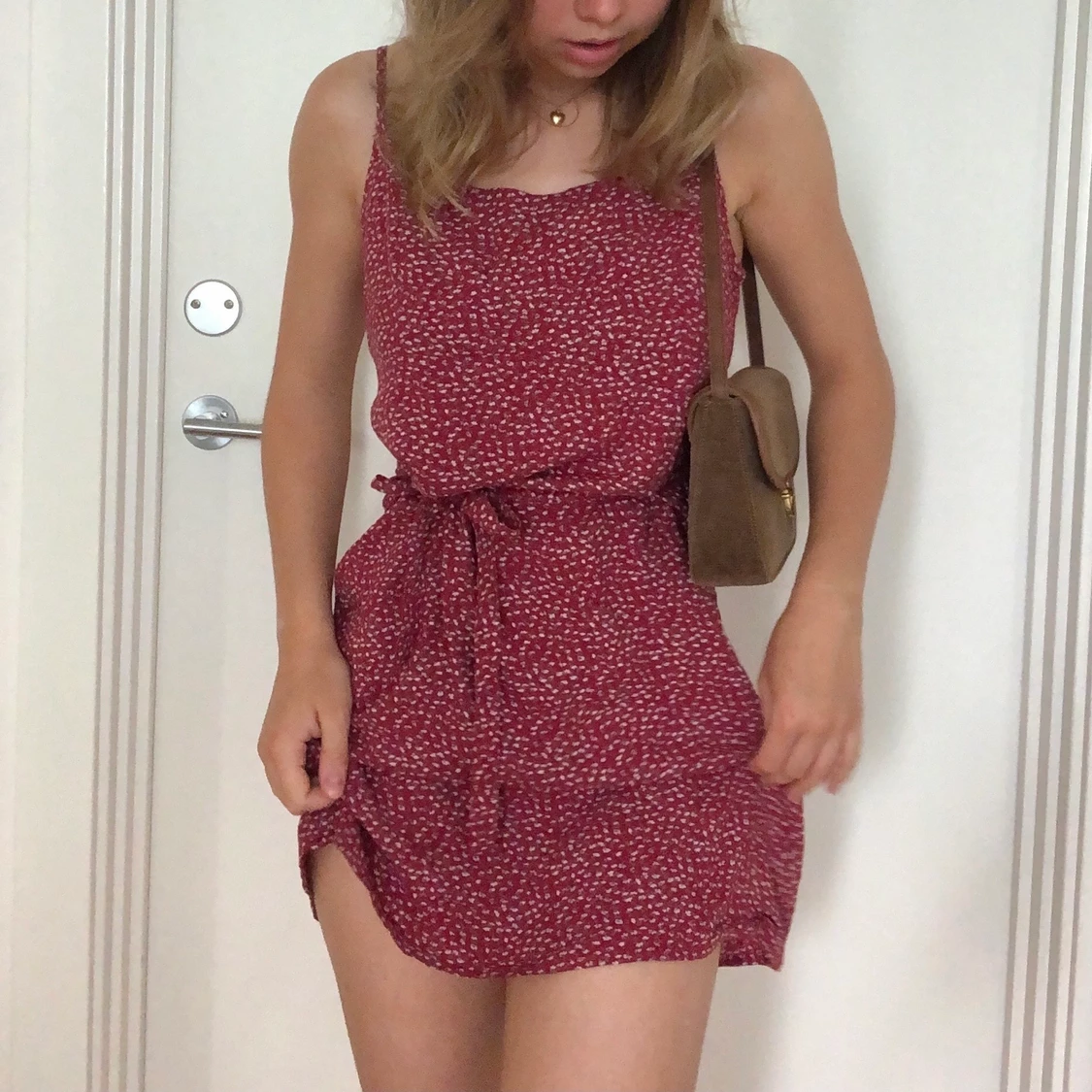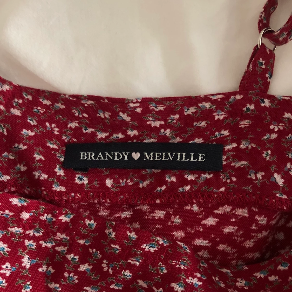 Brandy Meville klänning i röd blommigt tyg 🌻 Mjukt och tunnare skönt tyg som passar till sommaren ☀️ Har ett band så man kan göra en knytning antigen fram eller bak 💕säg till om ni vill ha mått! Tex längd etc. 🌼 Aldrig använd! Står ej storlek men passar XS-S