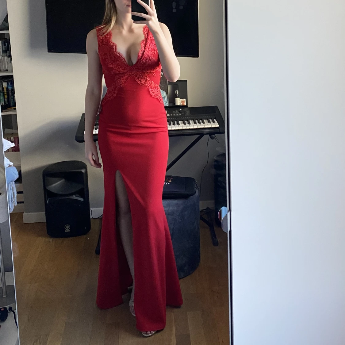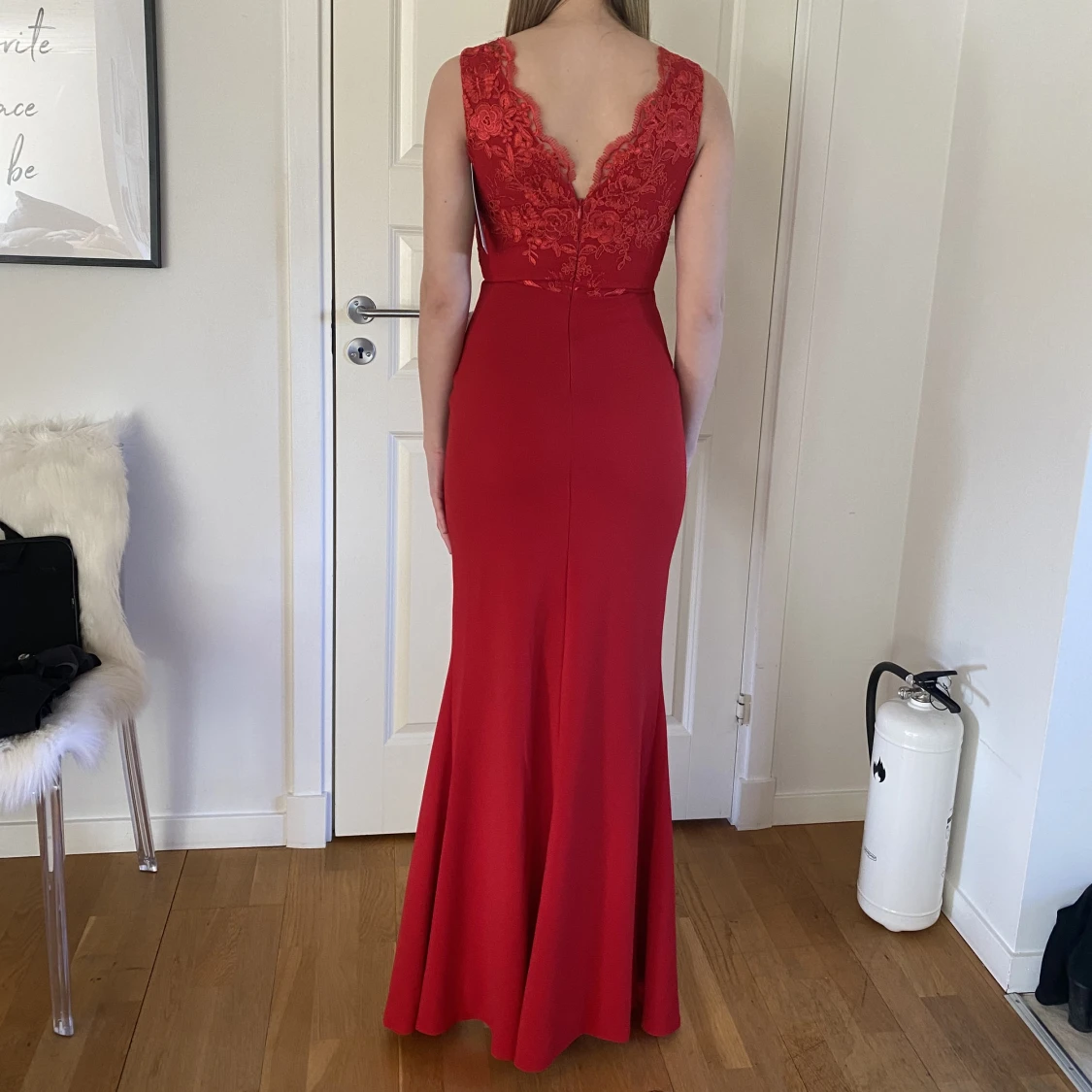 En superfin och helt oanvänd röd balklänning! Säljes på grund av inställd bal.