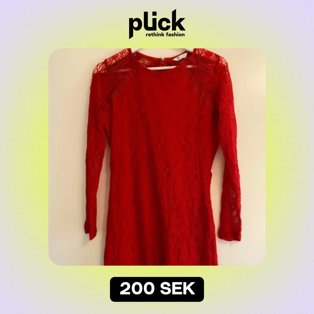 Röd spetsklänning använd på julafton för några år sedan, är i väldigt fint skick! Är strlk L men skulle säga att den passar M mer.