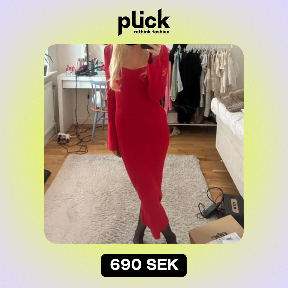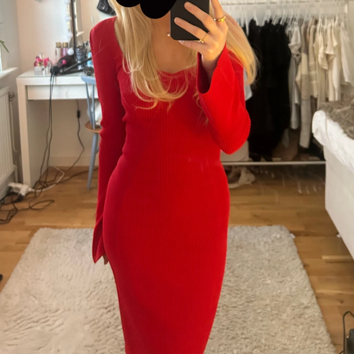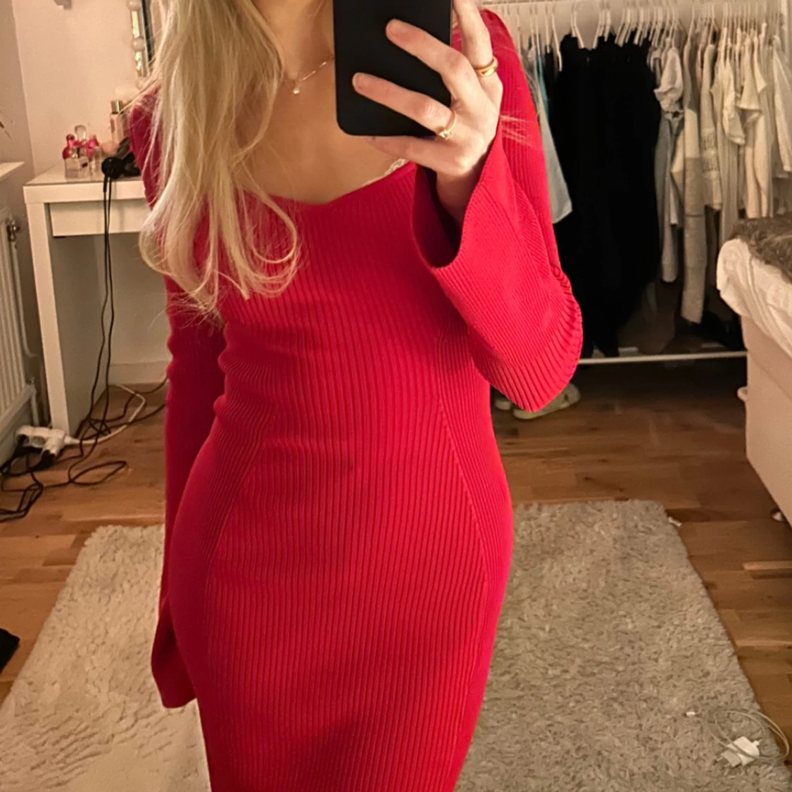 Röd midiklänning från Adoore i storlek 32, passar mig bra som vanligtvis har 34. Bra skick, använd vid ett tillfälle. Nypris: 1395 kr