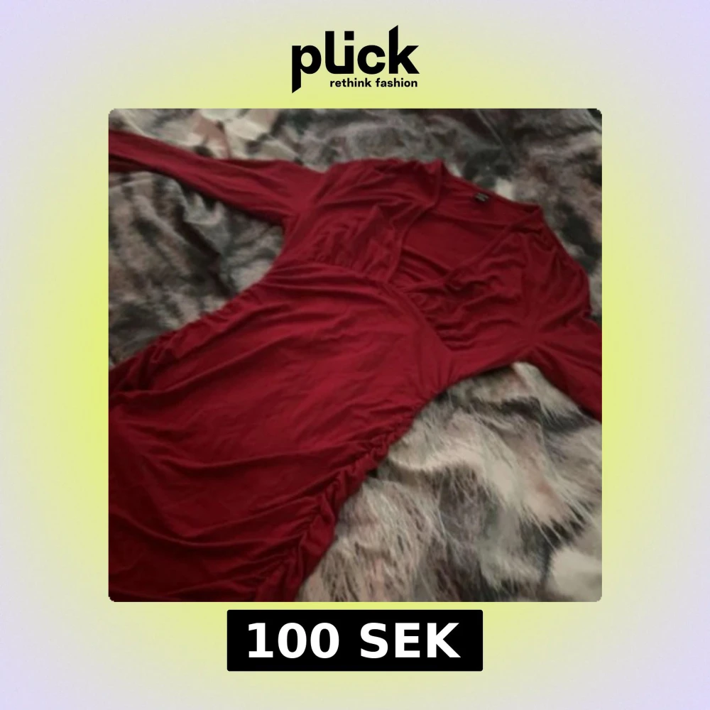 Snygg röd omlottklänning från shein med långa ärmar och v-ringning. Klänningen har rynkade detaljer längs sidorna som ger en cool och trendig look. Perfekt för dig som vill sticka ut med en färgstark och bekväm outfit.