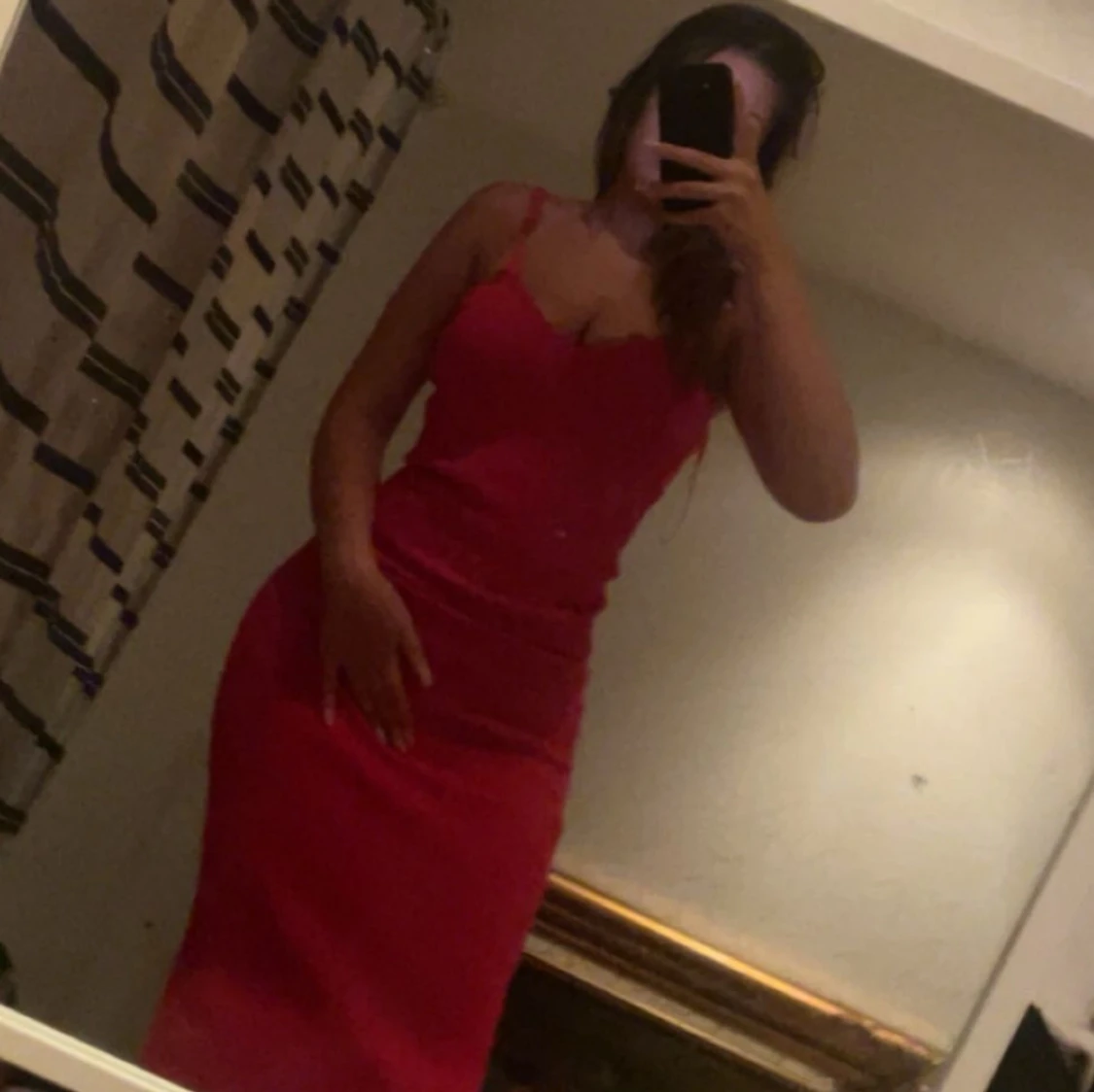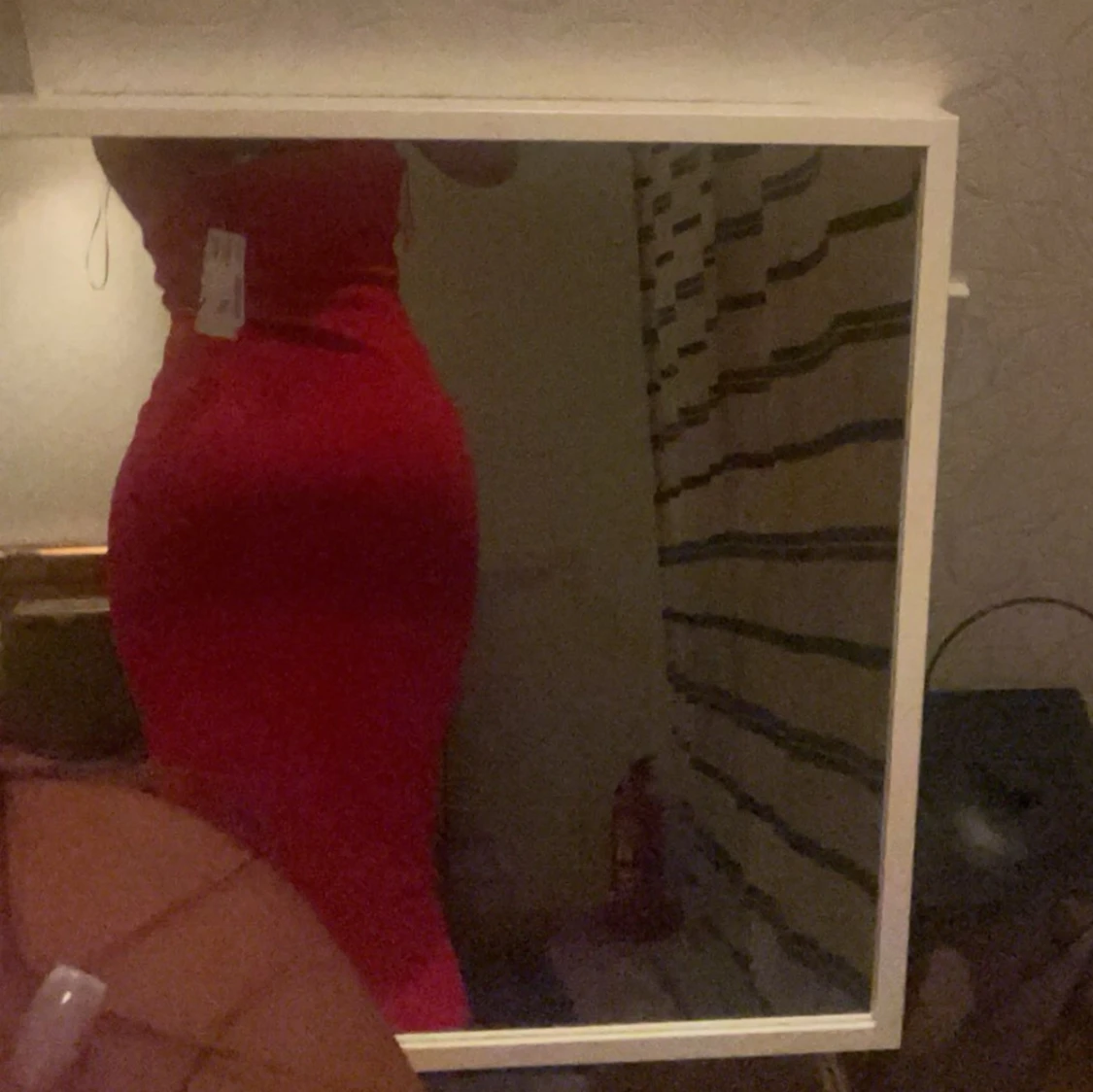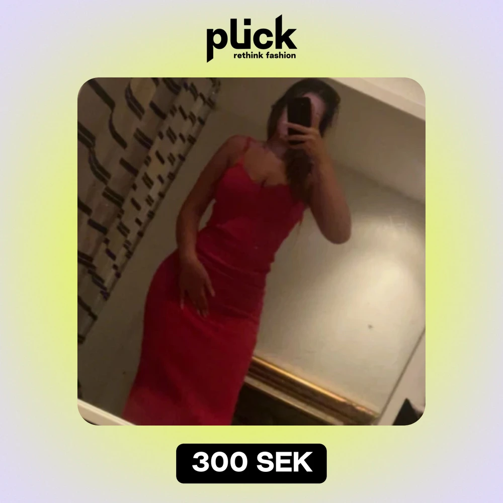 Röd klänning fråm zara, aldrig använd. Strl L men sitter kramar om kroppen fint så passar även storlekar neråt. Originalpris 399