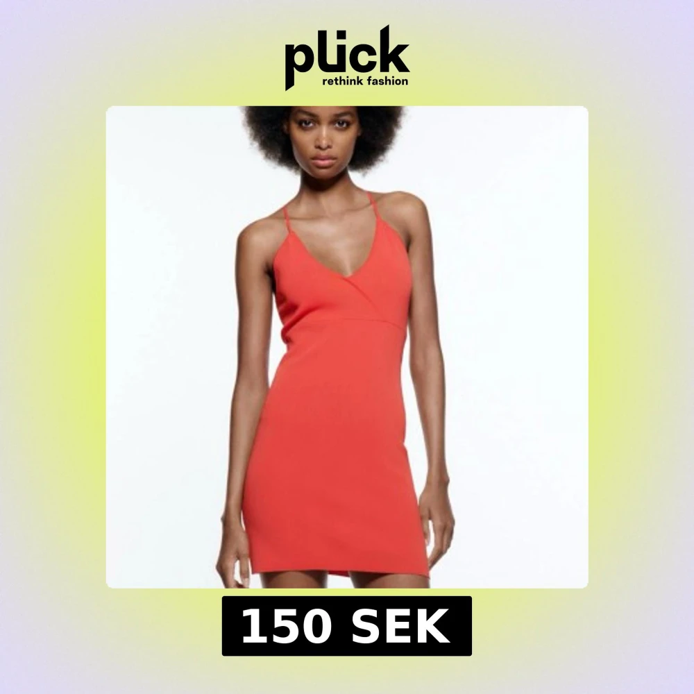 Trendig röd klänning med smala axelband och omlott-design. Den har en öppen rygg med korsade band och knytning för en elegant look. Perfekt för sommarens festligheter. Klänningen är aldrig använd