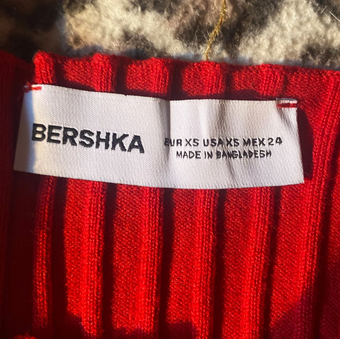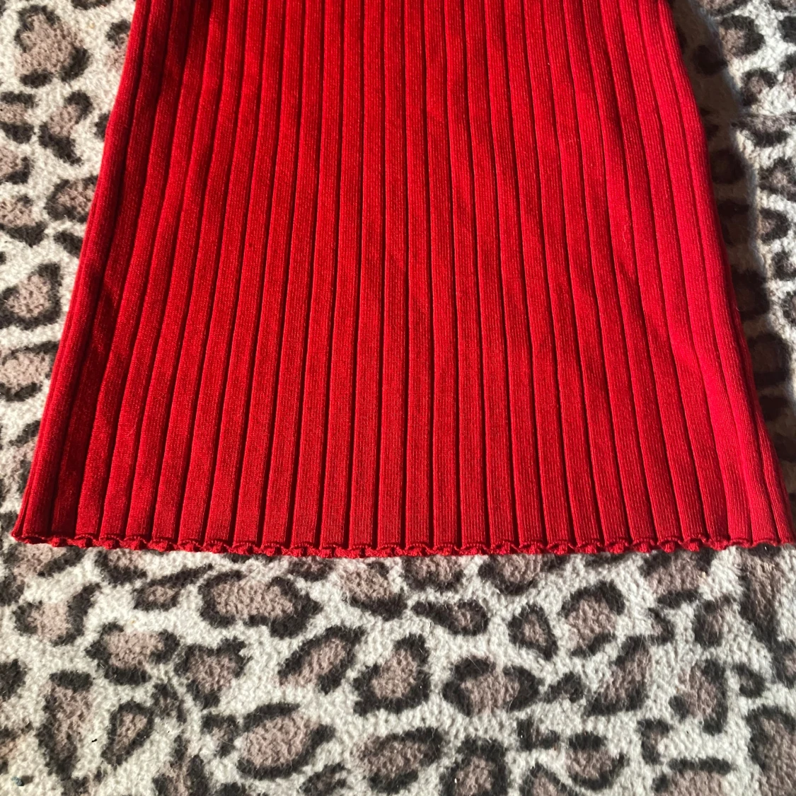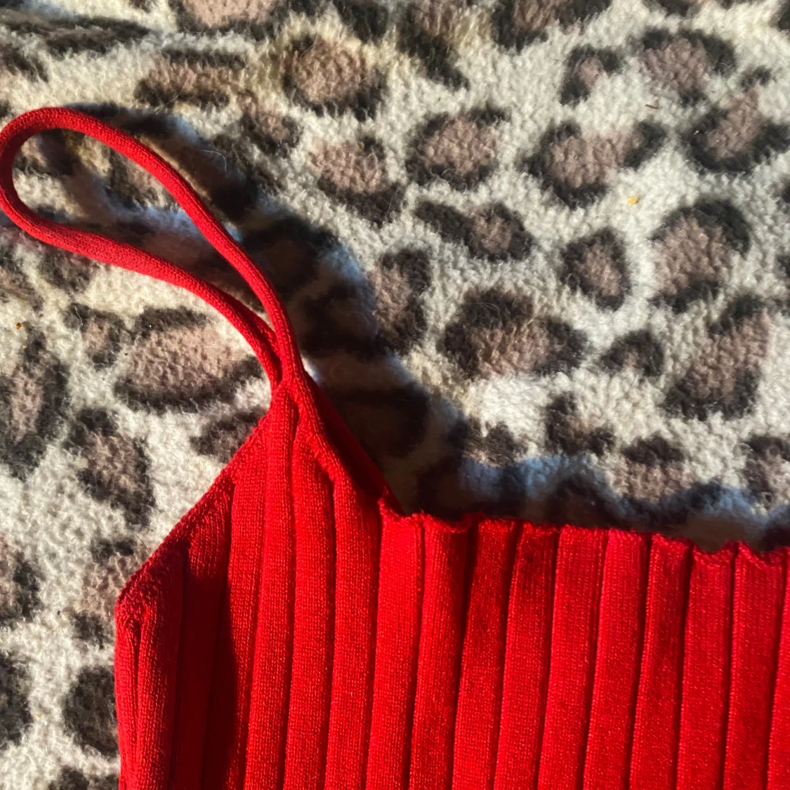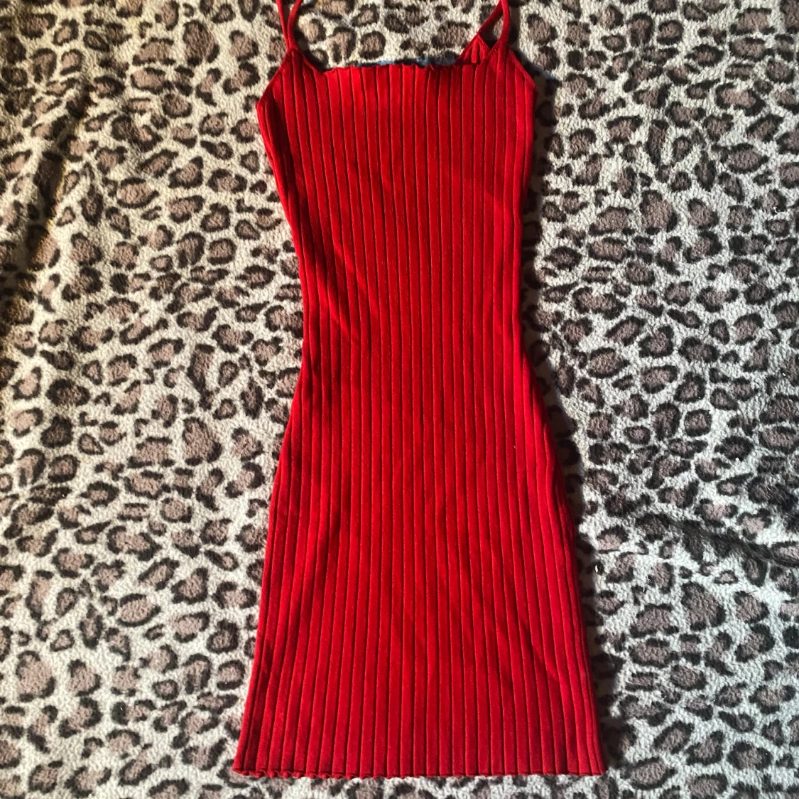 Supersnygg röd ribbad klänning från Bershka i figurnära modell. Klänningen är kort med smala axelband och har en stretchig, stickad känsla. Perfekt för dig som gillar en enkel men ändå iögonfallande look. Säljes i storlek XS. Endast testad.