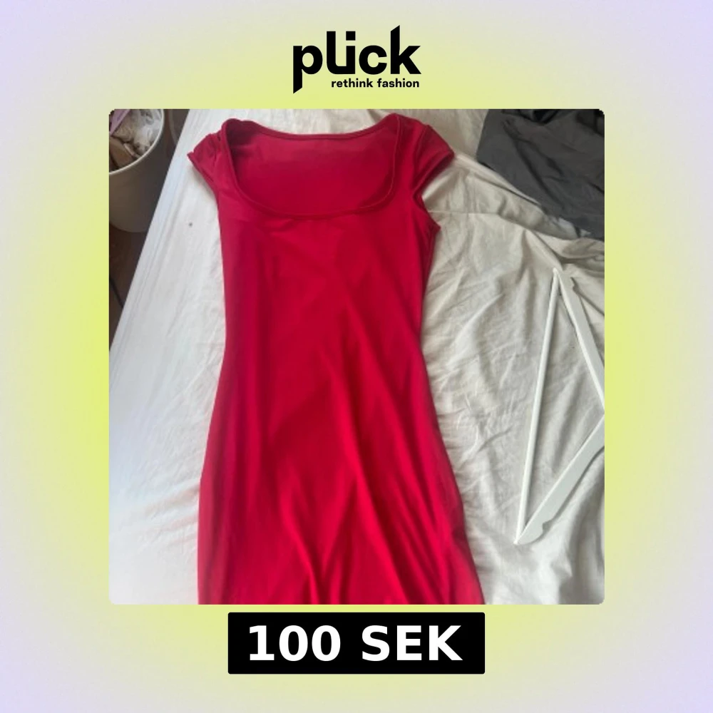 Snygg röd kortklänning med tight passform och fyrkantig ringning. Klänningen har korta ärmar och är tillverkad i ett mjukt, stretchigt material som sitter skönt på kroppen. Perfekt för dig som vill sticka ut med en enkel men stilren look.