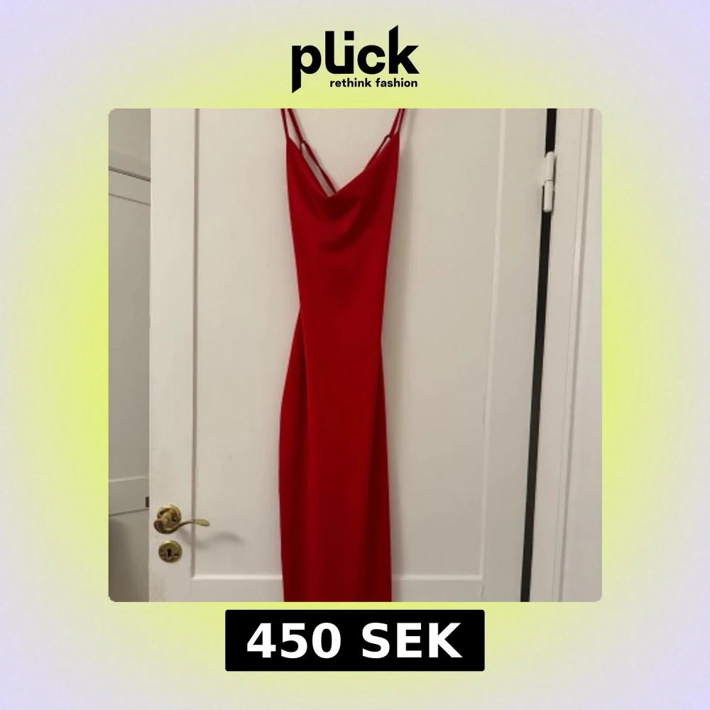 Snygg röd klänning från NA-KD med smala axelband och en elegant draperad rygg. Perfekt för en kväll ute eller en speciell tillställning. Klänningen har en figurnära passform och är tillverkad i ett mjukt material.