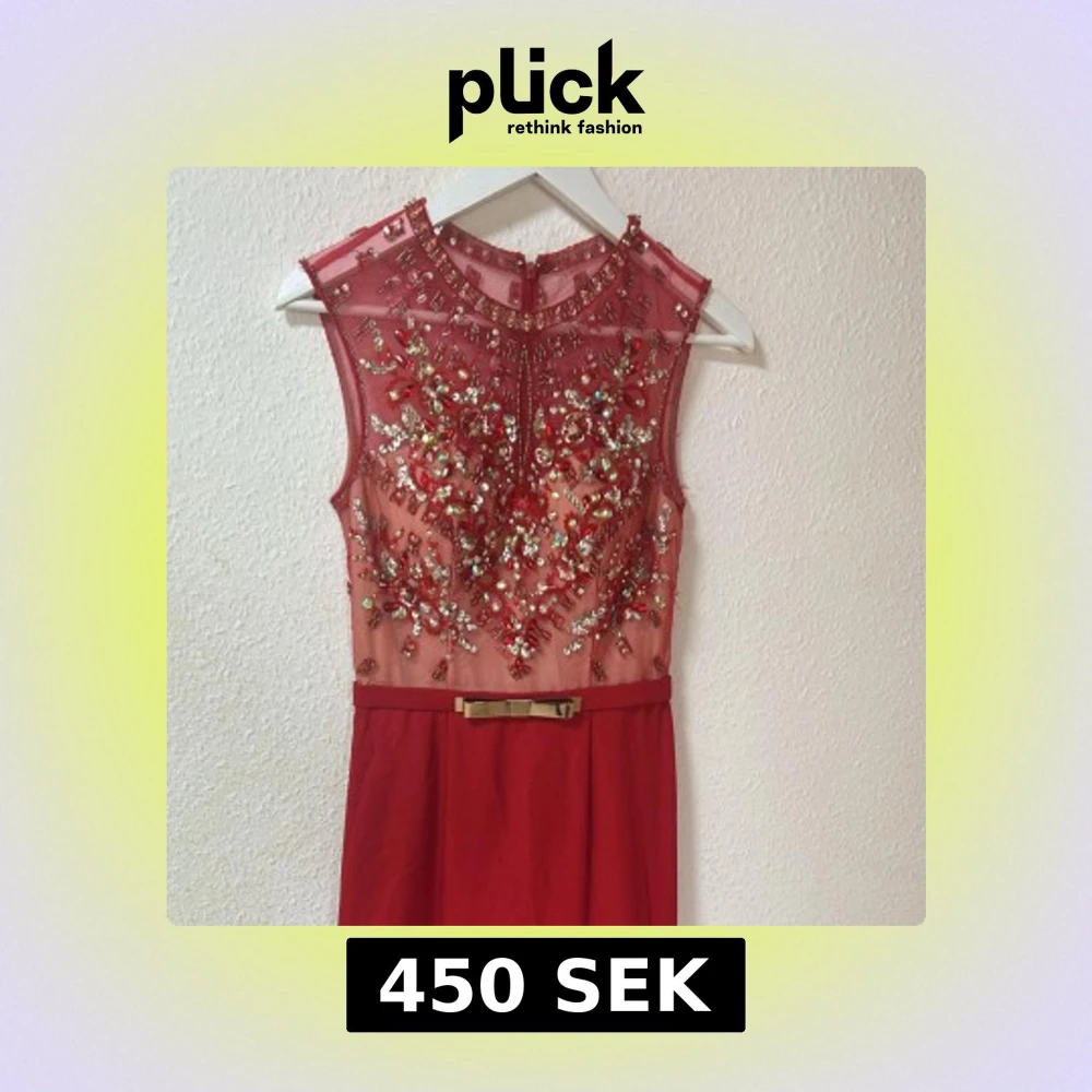 Supersnygg röd långklänning med transparent mesh upptill, dekorerad med glittrande paljetter, pärlor och broderade blommor. Klänningen är ärmlös och har ett elegant bälte med guldfärgad rosett i midjan. Perfekt för bal eller festliga tillfällen! Pris går att diskuteras vid smidigt köp ✨🤍