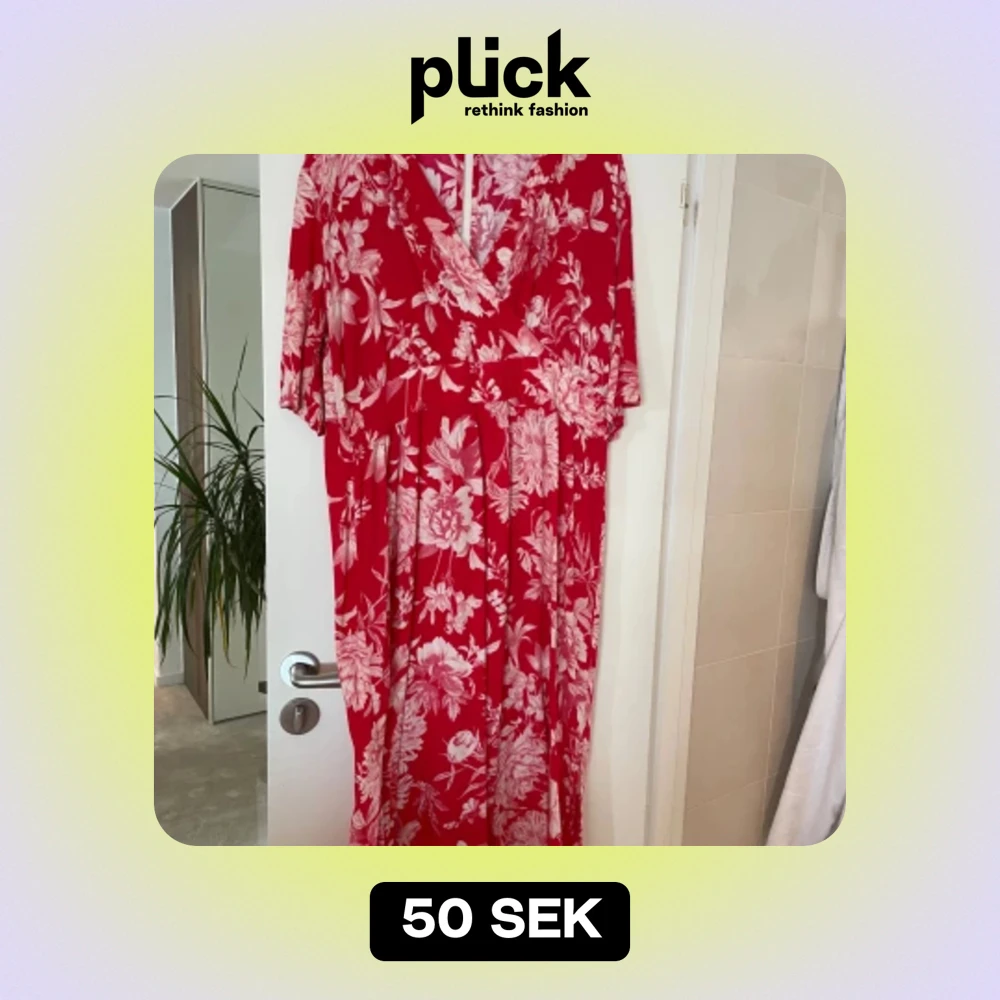 Super fin röd långklänning med vita blommor. Maxi klänning.