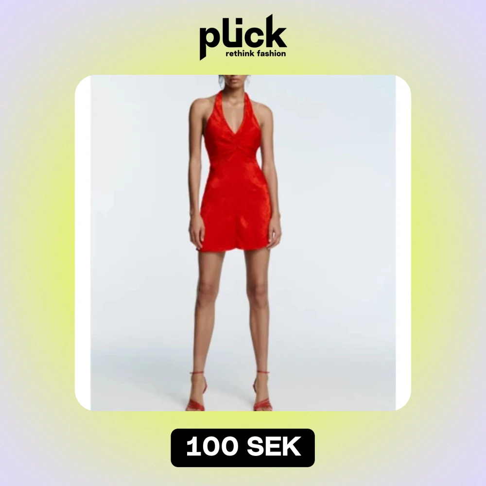 jättefin röd satinklänning i jacquard, oanvänd från ZARA
