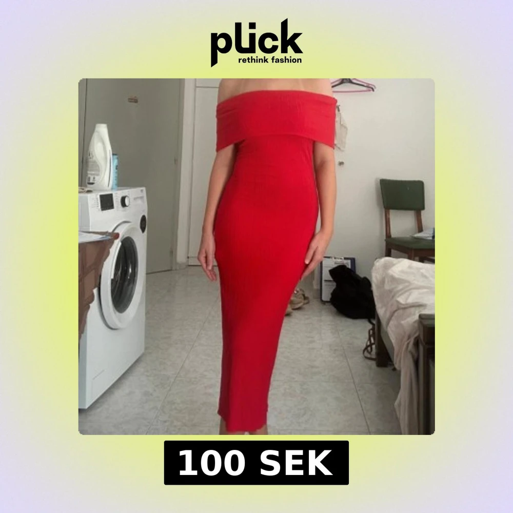 Snygg röd långklänning från Nakd med offshoulder-design och ribbad struktur, aldrig använd