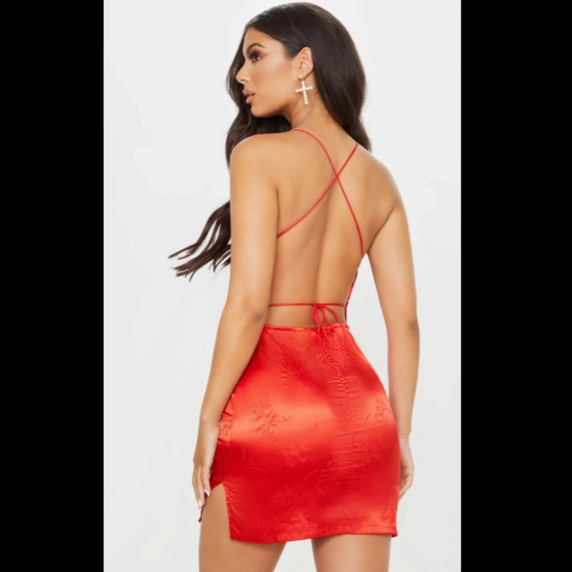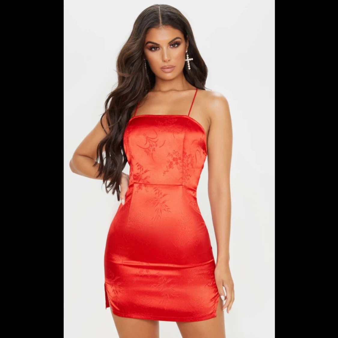 Lyxigt material satin som sitter jätte fint på kroppen. Kurvorna framhävs. Den är ny och oanvänd.