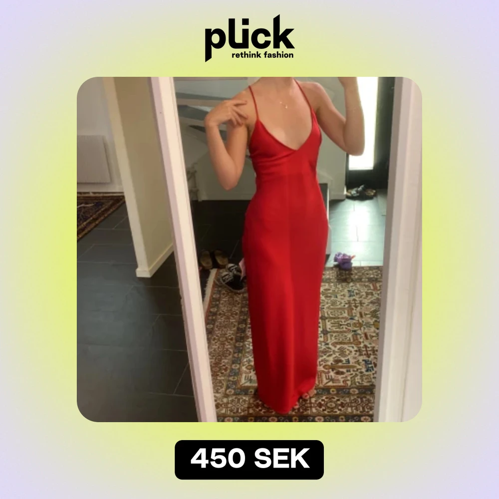 En röd lång satinklänning med öppen rygg + knutning. Aldrig använd, prislapp kvar! Storlek 32 från Asos❤️