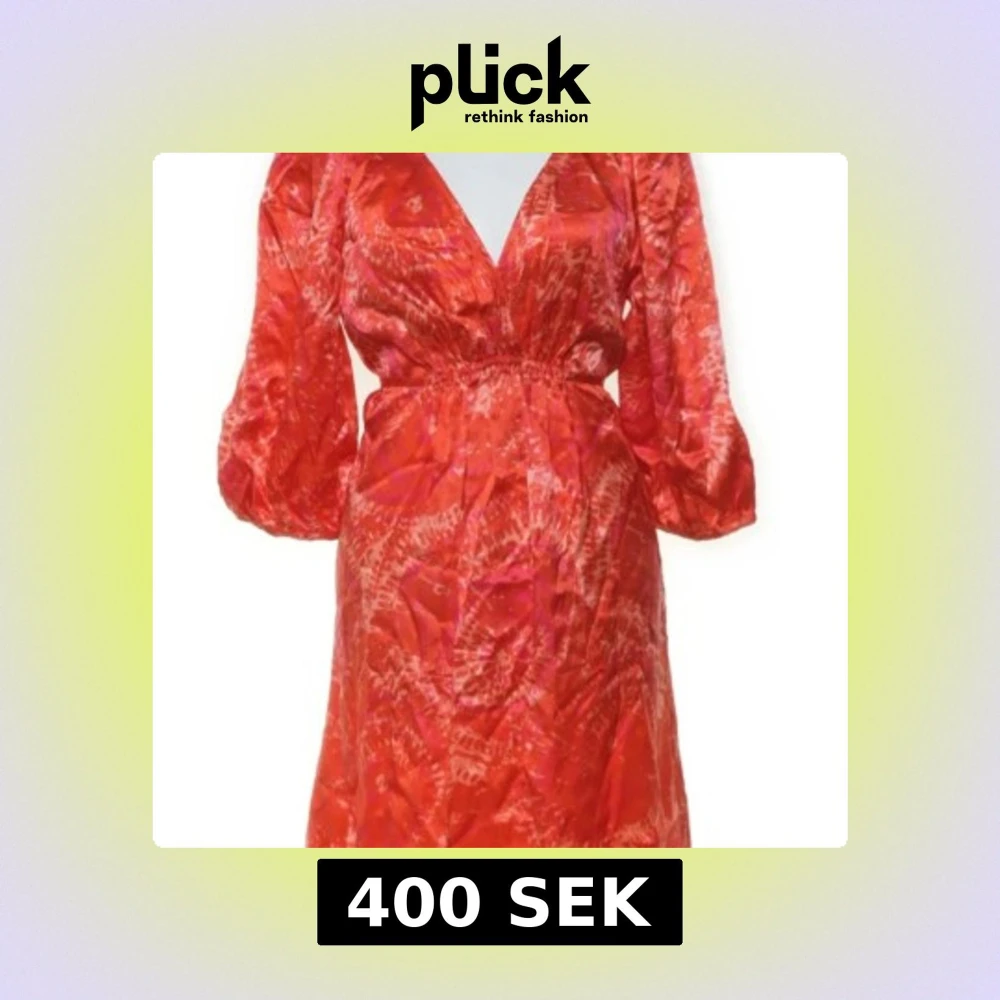 Säljer en vacker röd klänning i 100% siden från Part Two. Klänningen har ett unikt mönster och en v-ringad design med långa ärmar. Perfekt för en elegant look.