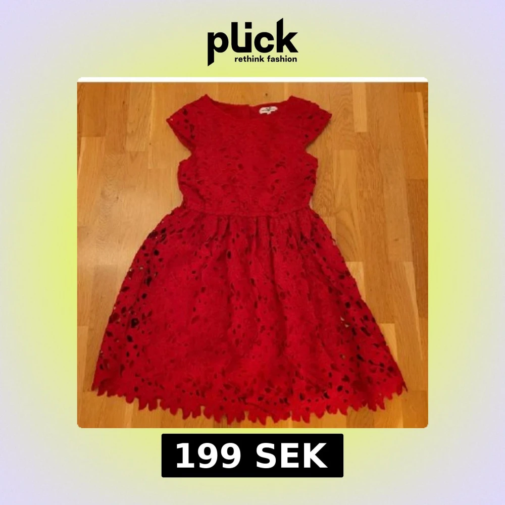 Röd klänning i spets från KappAhl, Hampton republic, med korta ärmar och rund hals. Klänningen har ett vackert blommönster och knäppning bak. Bälte inkluderas ej. Perfekt för jul och festliga tillfällen.
