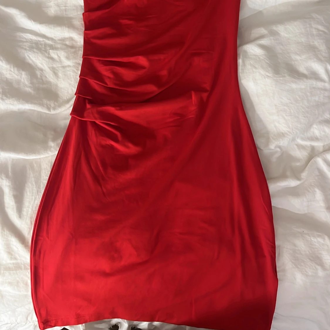 Säljer en röd, tight och figurnära klänning från H&M Divided i storlek XS. Klänningen är kort och har en enkel, stilren design utan ärmar. Materialet är mjukt och stretchigt, perfekt för dig som gillar en slimmad look.