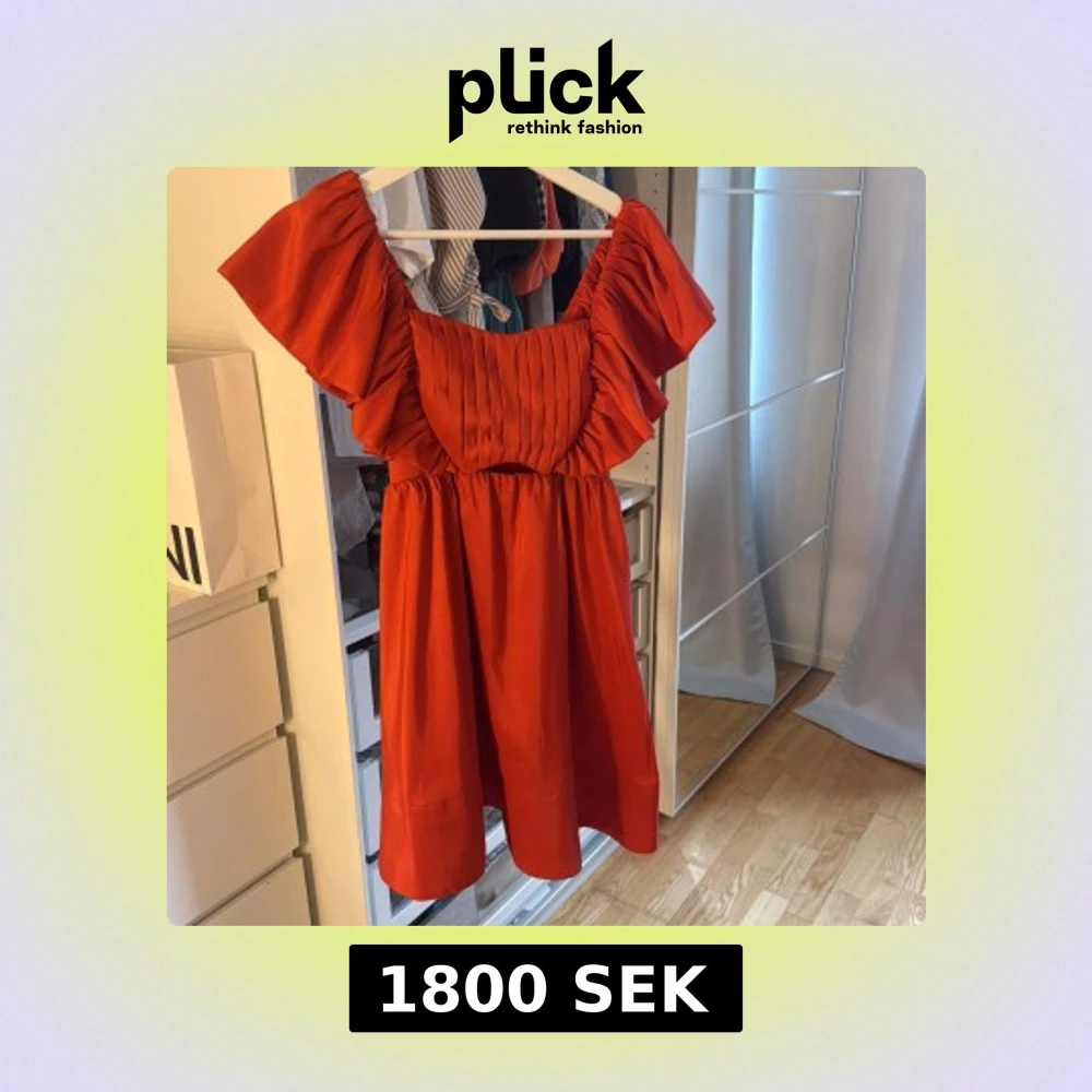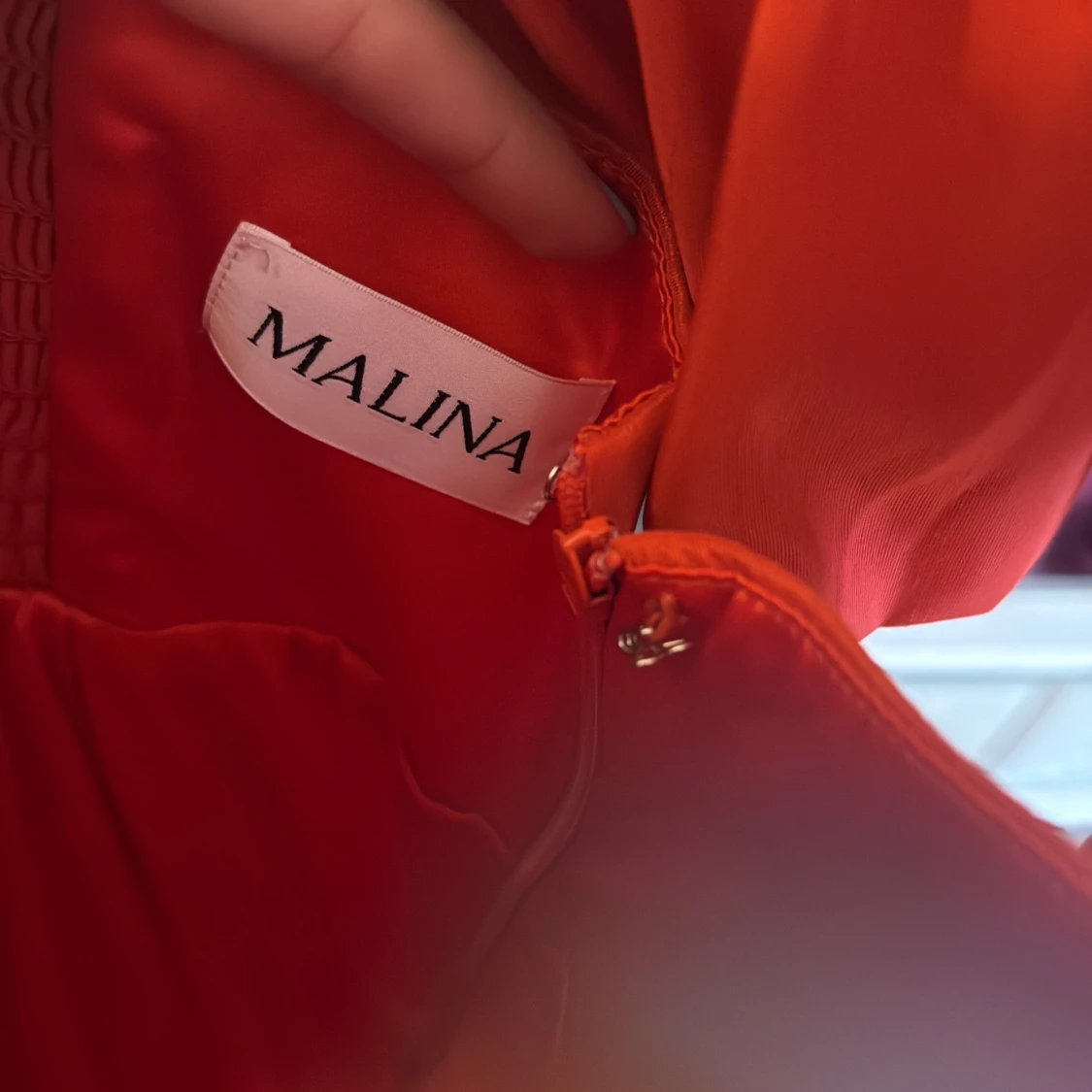 Superfin röd klänning från Malina med volangärmar och plisserad överdel. Klänningen har en vacker, luftig form och är tillverkad i ett glansigt material som känns lyxigt. Perfekt för dig som vill sticka ut med en färgstark look. Använd en gång och efter det kemtvättad så den är som ny! SLUTSÅLD 2600 nypris! Skickar i kartongen den kom i