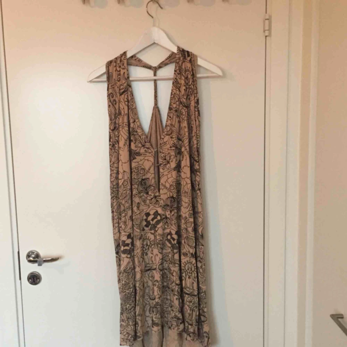 Draperad klänning från Rodebjer i mjukt material (bomull? Lapp bortklippt). Använd ett fåtal gånger, i fint skick. Beige med svart mönster. Möts i Stockholm efter överenskommelse eller skickas mot fraktkostnad.