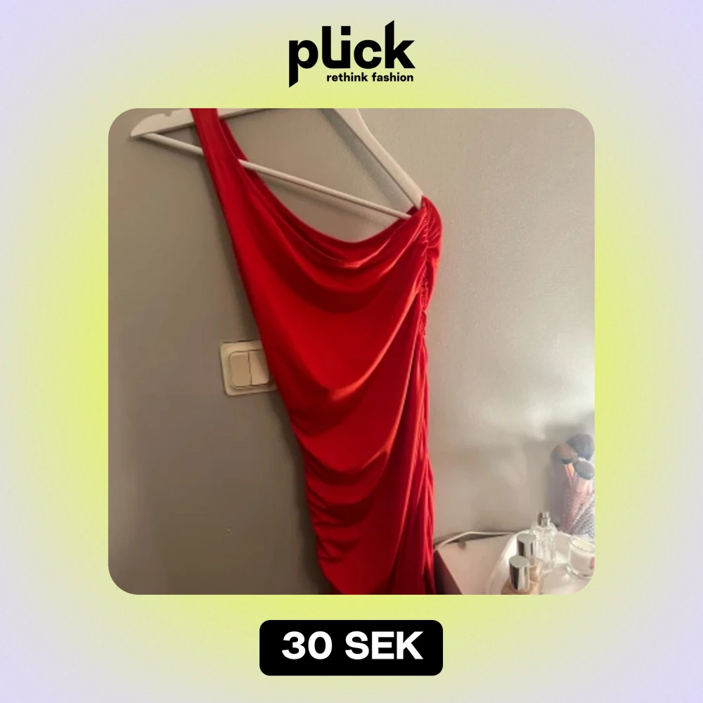 röd kläning med ett axelband den är ribbad på sidorna ganska tun i materialet. 30kr + frakt