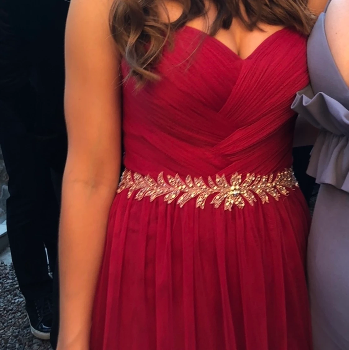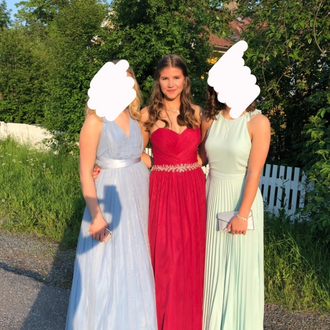 Säljer nu min superfina balklänning! Den är hallonröd med silvriga detaljer och från bröllopsklännings märket Aspera by Alicja Eklöw och endast använd en gång, så i jättefint skick! Jag är 169cm och hade 7cm klackar på bilden, klänningen är i 34 men skulle snarare säga att den är en 36a. Den går lätt att ta in/ut i bysten då den är sydd så att den lätt ska kunna alterneras. Axelband finns med! Nypris är ca. 7000. Skriv till mig för frågor eller fler bilder! 💓 Pris kan diskuteras vid snabb affär