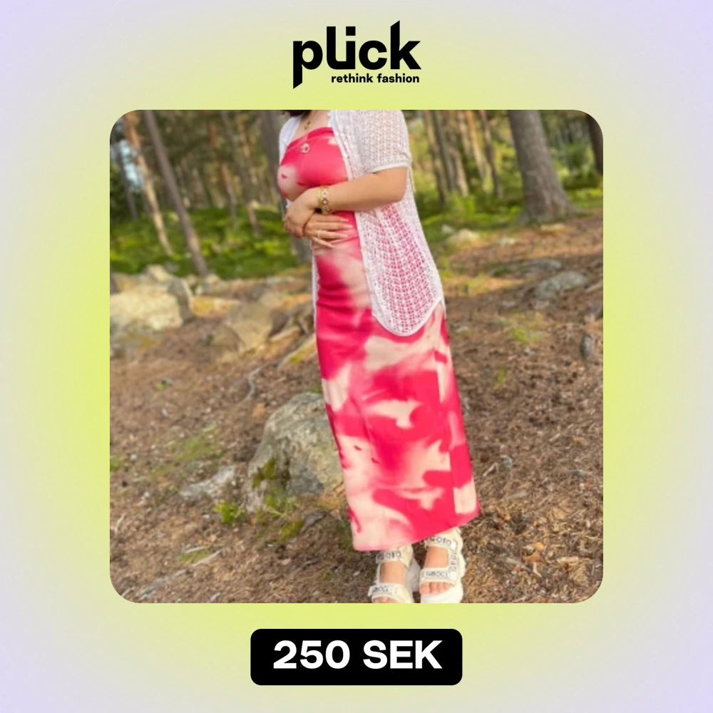 Säljer en superfin rosa långklänning med ett unikt mönster. Klänningen är ärmlös och perfekt för sommardagar. Den har en bekväm passform och är gjord i ett mjukt material. Perfekt för en avslappnad dag i naturen eller en sommarfest!