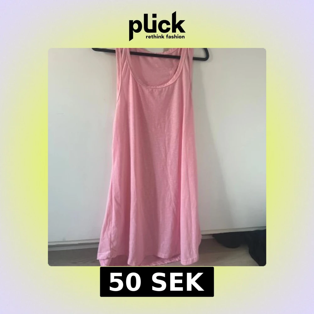 Säljer en enkel och luftig rosa klänning med rund halsringning. Klänningen är ärmlös och har en avslappnad passform, perfekt för varma dagar. Tillverkad i mjukt material som känns skönt mot huden.