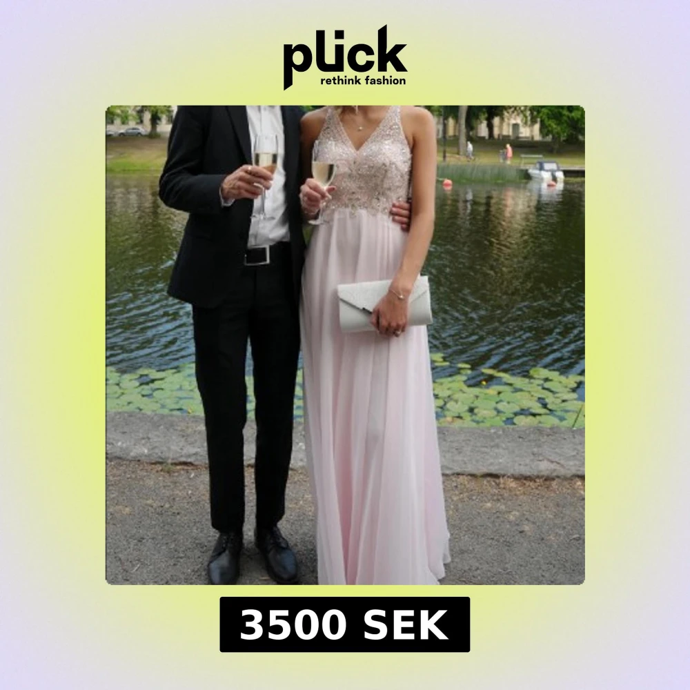 Säljer min super fina balklänning med glittriga paljettdetaljer på överdelen och har en öppen rygg. Klänningen har en v-ringad design och korsade axelband bak. Storlek xs, den är uppsydd för mig som är 170cm + 5cm klackar, kemtvättad och ren! Köpt ny för ca 4200kr. kan fixa mer bilder & pris går såklart att diskutera :))