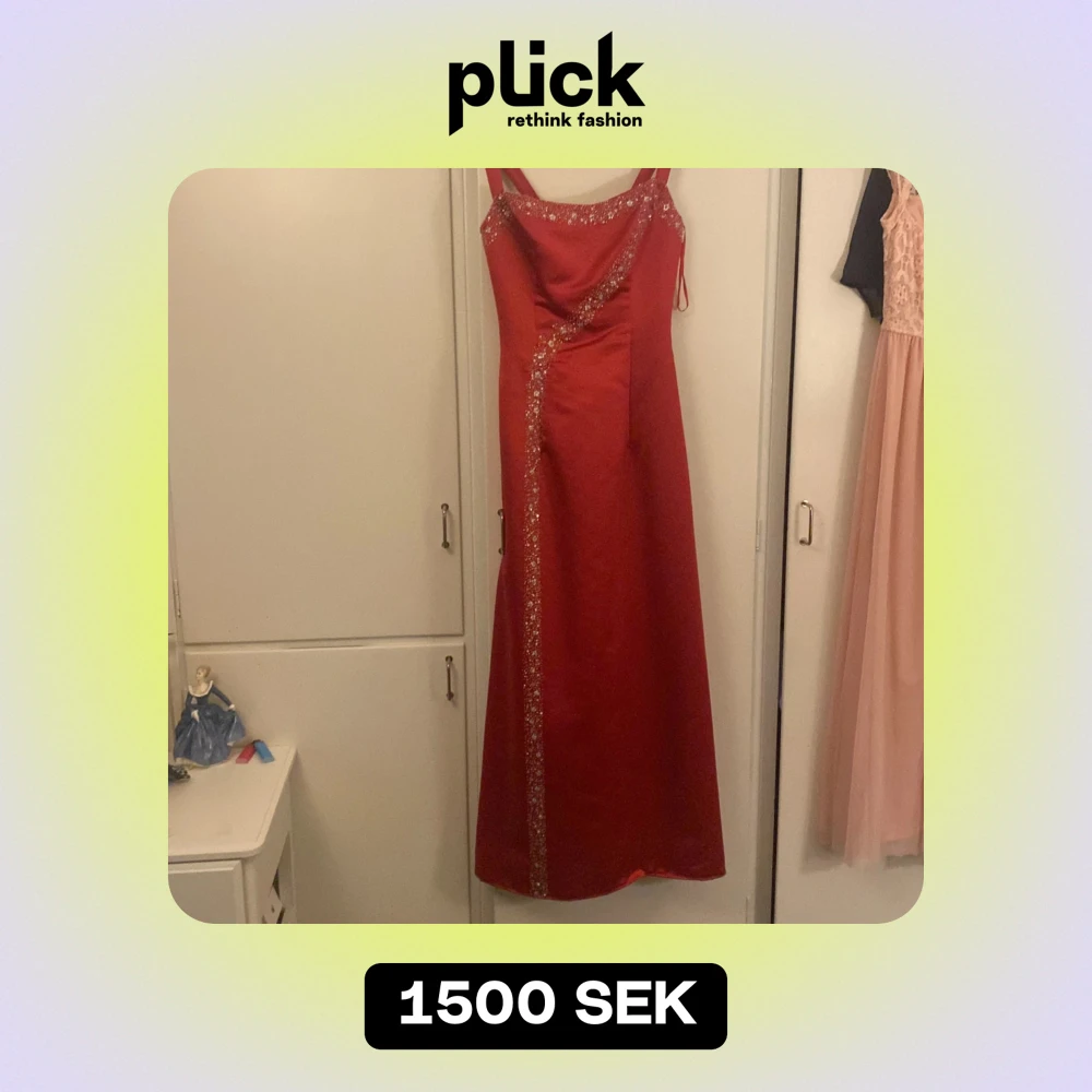 Säljer en elegant rosa långklänning med vackra pärldetaljer längs axelbanden och diagonalt över klänningen. Perfekt för festliga tillfällen. Klänningen har en smickrande passform och är tillverkad i ett glansigt material som ger en lyxig känsla.