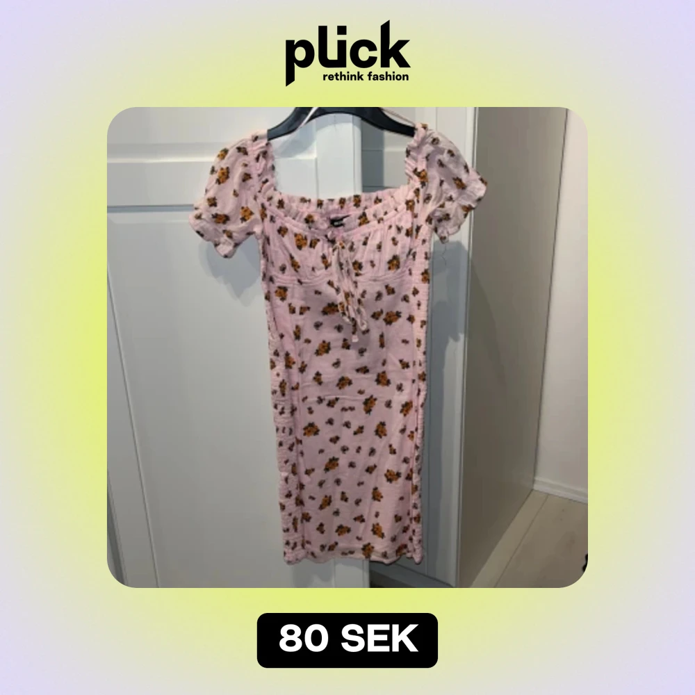 Säljer en superfin tajt rosa klänning från BikBok i storlek S med ett gulligt blommönster i orange och grönt. Klänningen har korta ärmar och en söt knytning framtill. Perfekt för sommardagar eller en mysig vårutflykt! 🌸