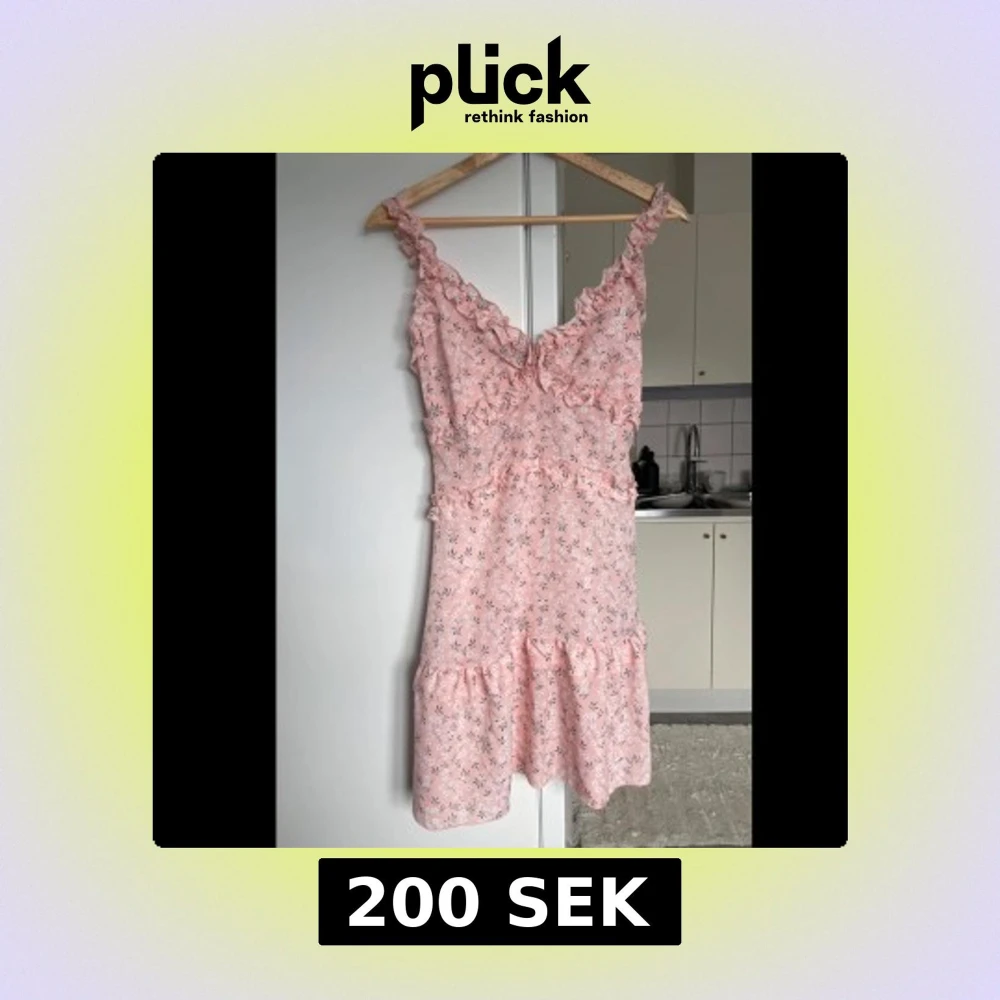 Charmig rosa klänning med blommigt mönster och volangdetaljer. Perfekt för sommarens varma dagar. Klänningen har en v-ringad design och är ärmlös. 🩷
