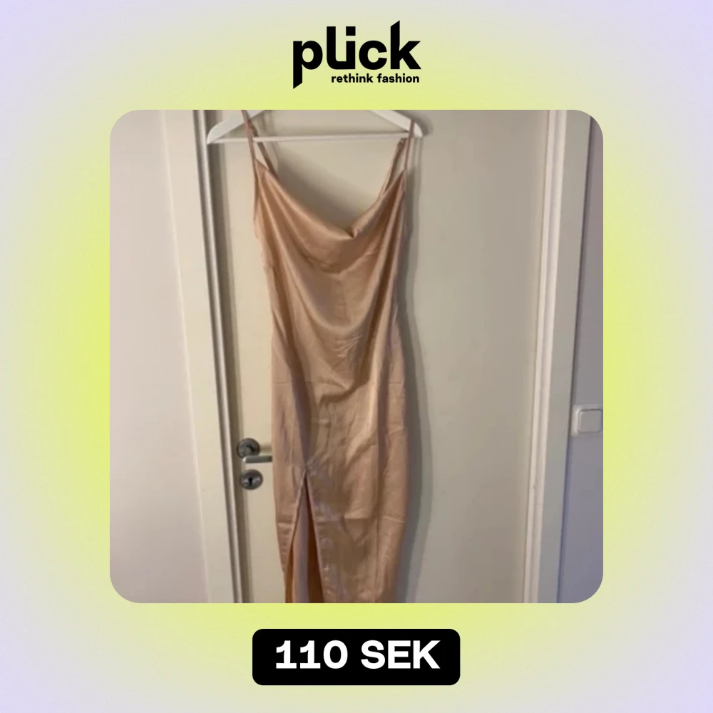 En satin klänning i färgen beige. I storlek xs, säljer då jag inte får på mig den. Den har en dragkedja på ryggen och slits vid låret. Säljer för 110kr men priset kan även diskuteras. För mer bilder eller frågor skriv gärna privat.