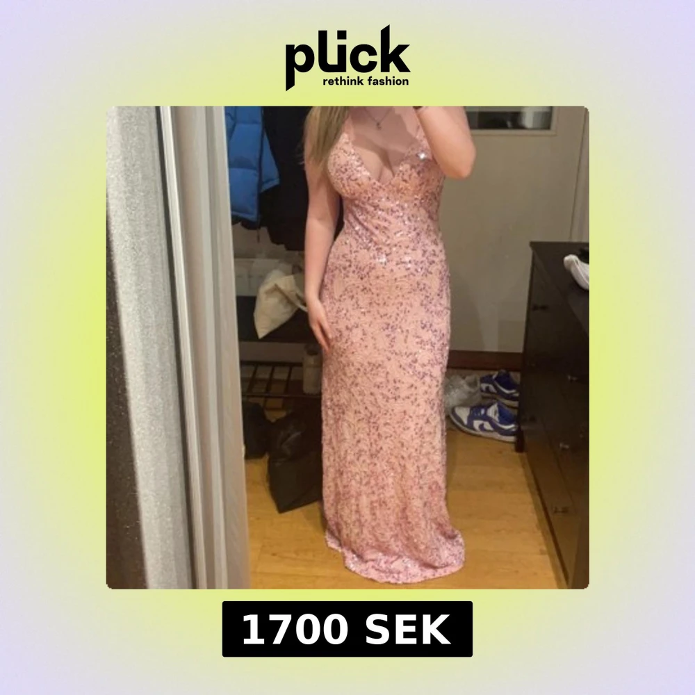 Säljer en fantastisk rosa långklänning med glittriga paljetter och öppen rygg. Klänningen har en figurnära passform och tunna axelband. Perfekt för bal eller annat event!