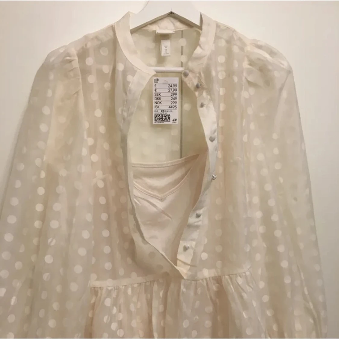Helt ny vit klänning från H&M med prislappen på. Det finns en extra ljusrosa underklänning som sitter fast med den prickiga klänningen. Storlek XS men är stor så passar också S, M. Originalpris 299 kr. Frakt ingår ej
