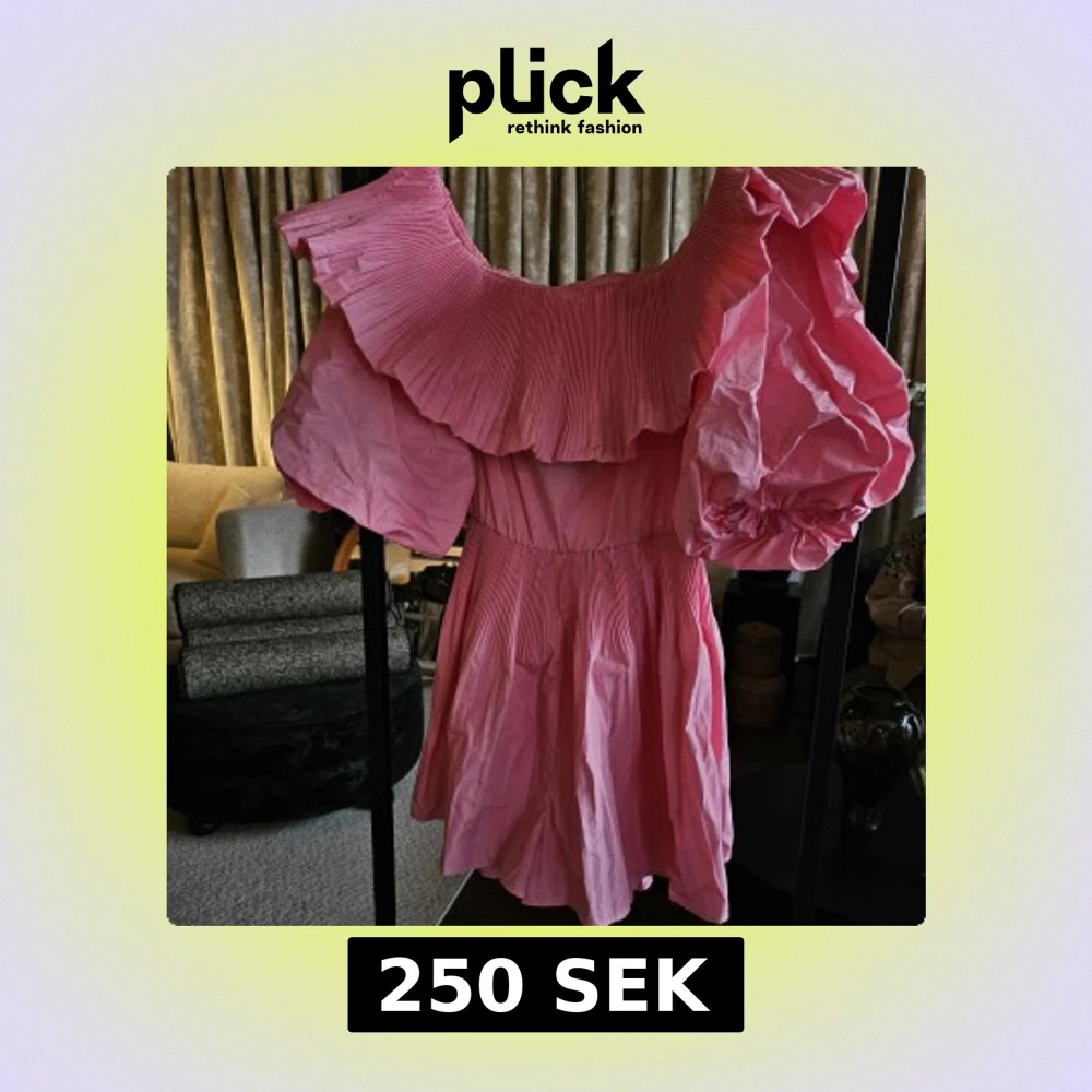 Supersöt rosa jumpsuit med stora volangdetaljer och plisserad offshoulder-ringning. Klänningen har puffiga korta ärmar och en luftig, flowy passform som känns både trendig och lekfull. Perfekt för dig som vill sticka ut med en färgglad och feminin look.