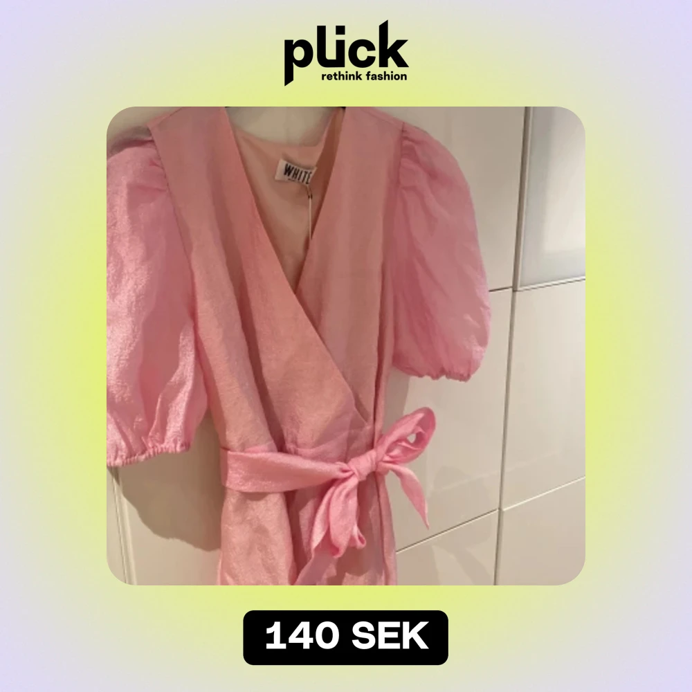 Så söt rosa klänning med puffärmar och band i midjan. Aldrig använt. Stl 38 men passar mig som har 36.