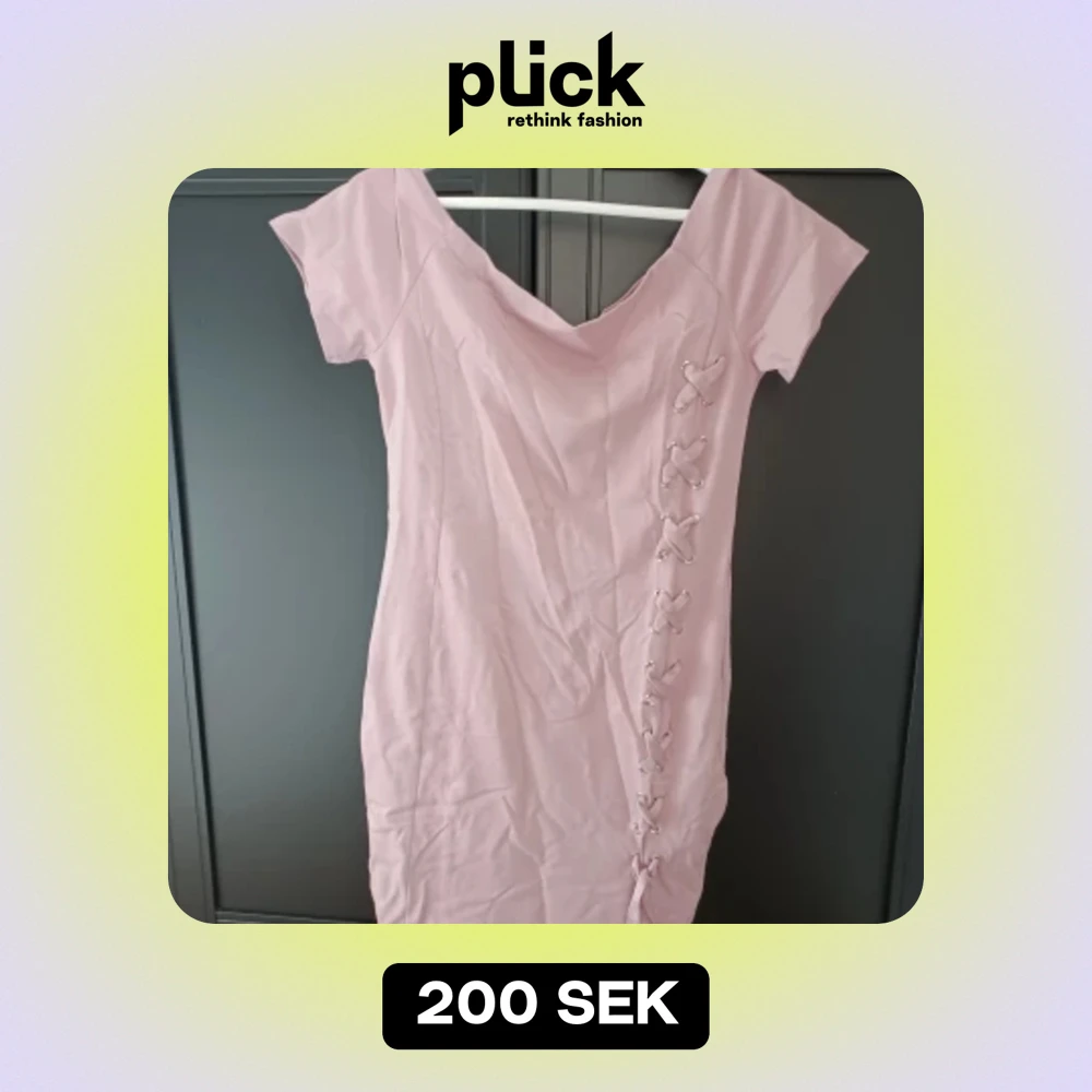 Fin rosa klänning. Skönt slätt material som är formande och lite elastiskt. Lätt att ta av o på. Snören på sidan som dekoration. Sällan använd och säljer den därför nu. Finns inga fläckar eller märken på den. Pris kan diskuteras