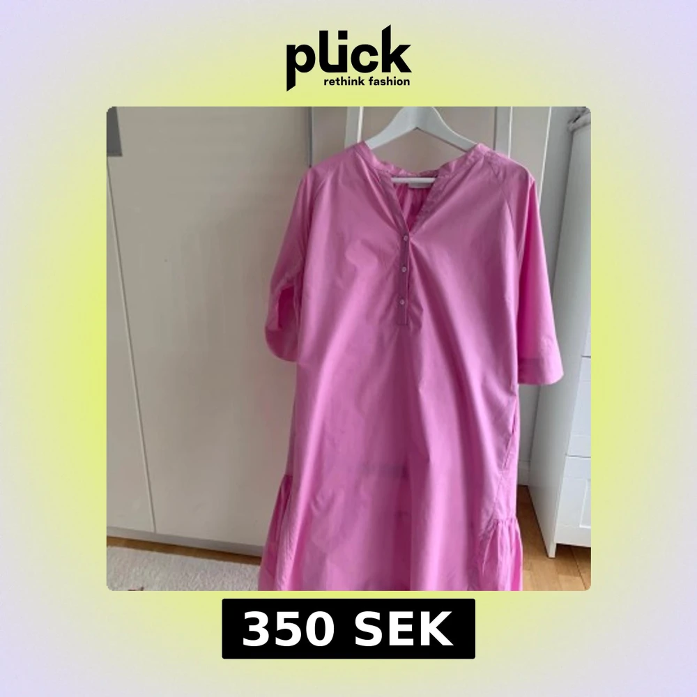 Supersöt rosa klänning från Coster Copenhagen med avslappnad passform, v-ringning och knappar framtill. Klänningen har kort ärm och volangdetalj nertill. Använd 1 gång så nyskick
