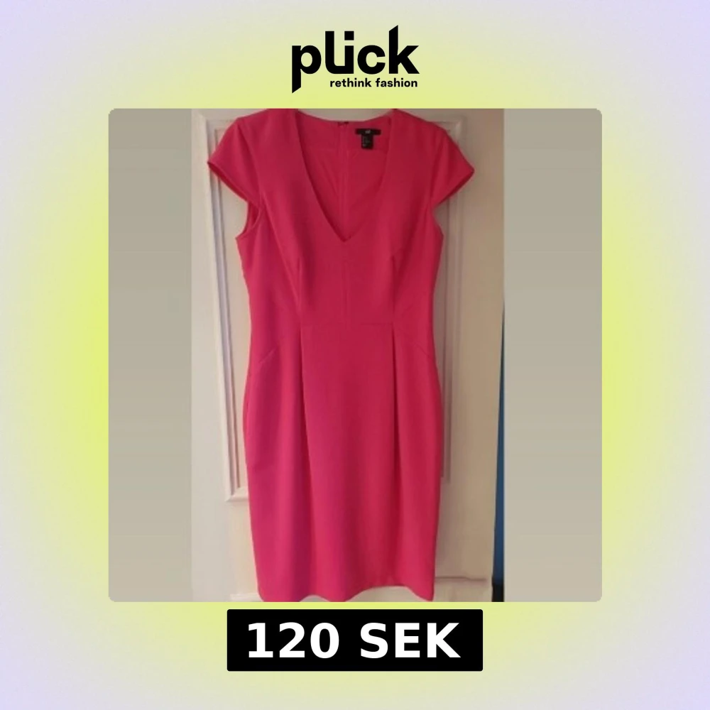 Snygg rosa klänning från H&M med v-ringning och korta ärmar. Klänningen har en dragkedja i ryggen och är perfekt för en färgglad look. Den är tillverkad i ett mjukt material som ger en bekväm passform.