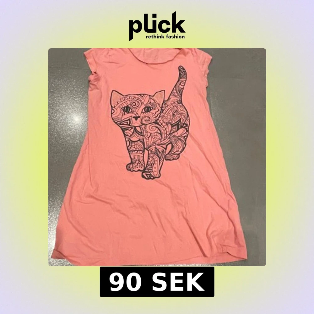 Söt rosa pyjamas klänning från Lindex med ett kattmotiv i svart med korta ärmar och rund halsringning. Skriv privat för fler bilder eller frågor :)