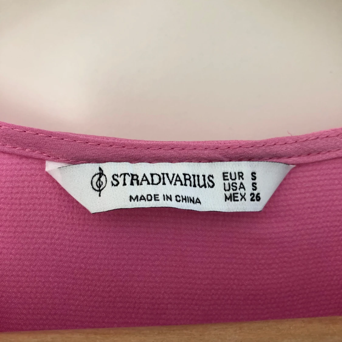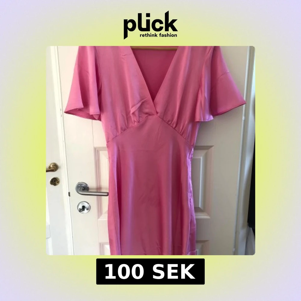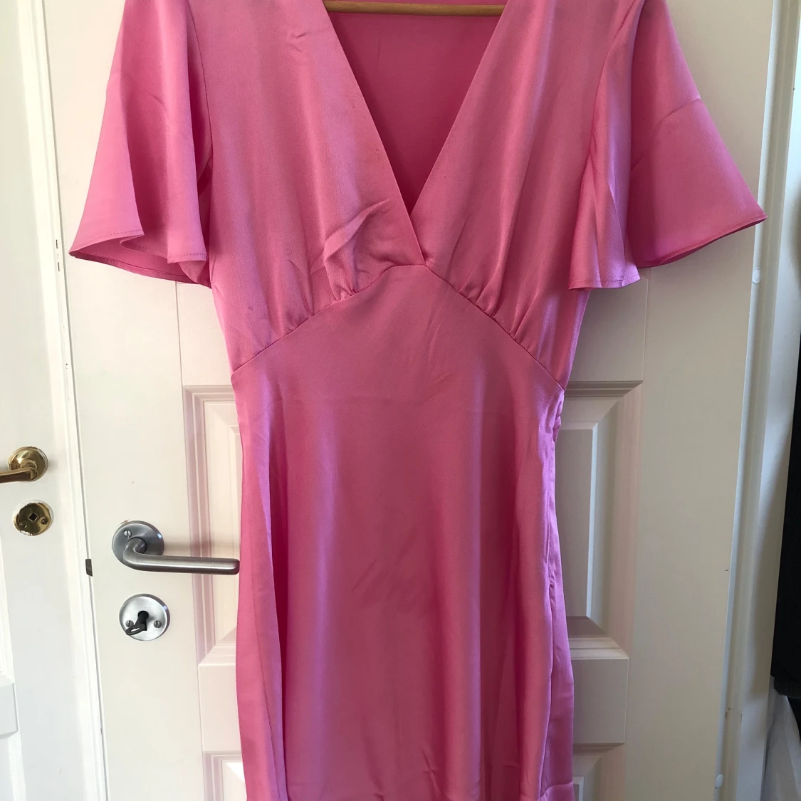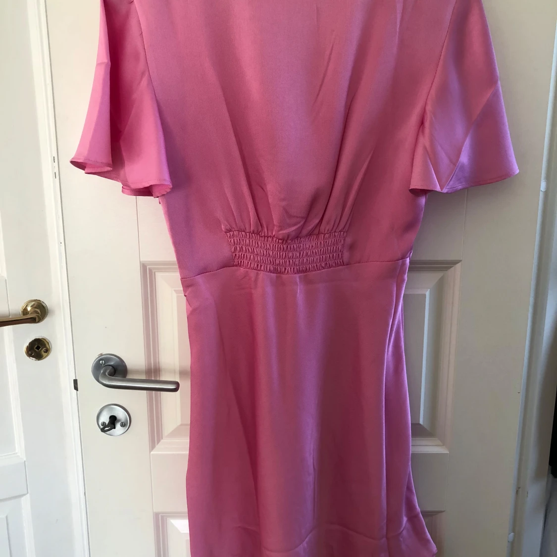 Säljer en söt rosa omlottklänning från Stradivarius i storlek S. Klänningen har v-ringning, korta vida ärmar och markerad midja med smock baktill. Klänningen är ganska kort och har tyvärr fått några flottfläckar på framsidan, men om man kan fixa det är den superfin! 🩷