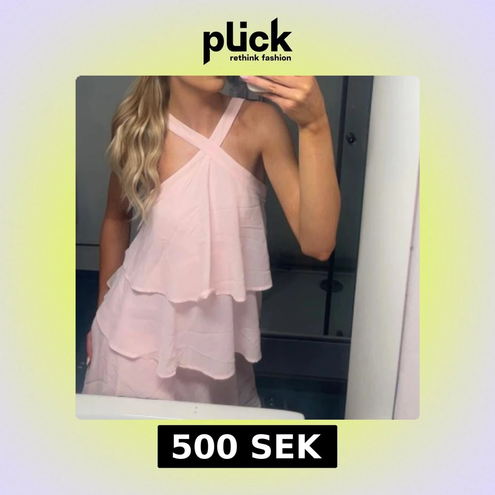 Säljer en superfin ljusrosa långklänning med volanger. Från Vila och har bara använts en gång. Den går hela vägen ner till marken på mig som är 167. Den är öppen i ryggen och har dragkedja i bak💕