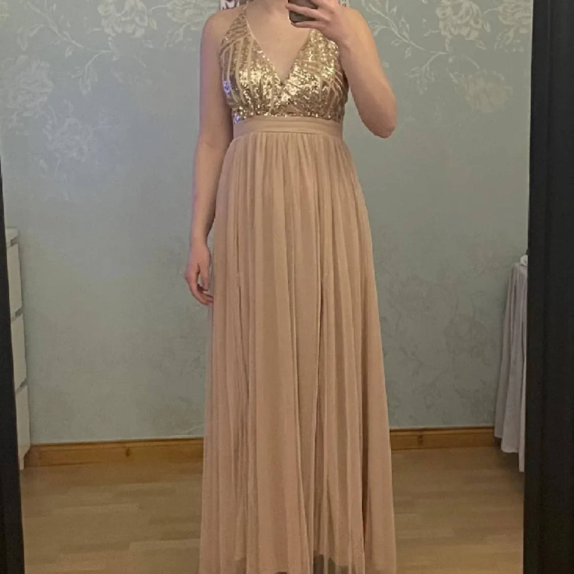 Klänning med paljetter och öppen rygg med dragkedja bak. Den är inte mer än testad då jag hittade en annan klänning. Pris kan diskuteras
