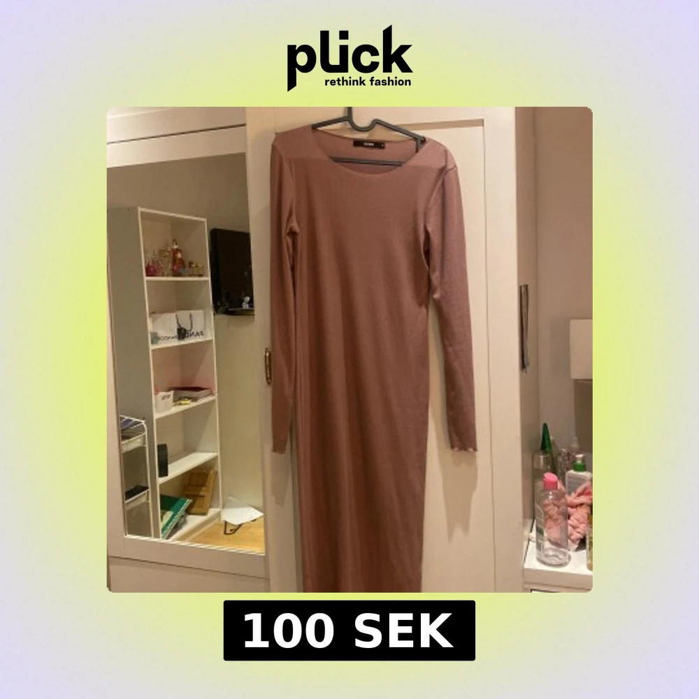 Säljer en enkel och stilren långärmad klänning från BikBok i en mjuk, ljusrosa ribbad kvalitet. Klänningen är kroppsnära och har rund halsringning samt hellångt snitt. Perfekt för dig som gillar minimalistisk stil.