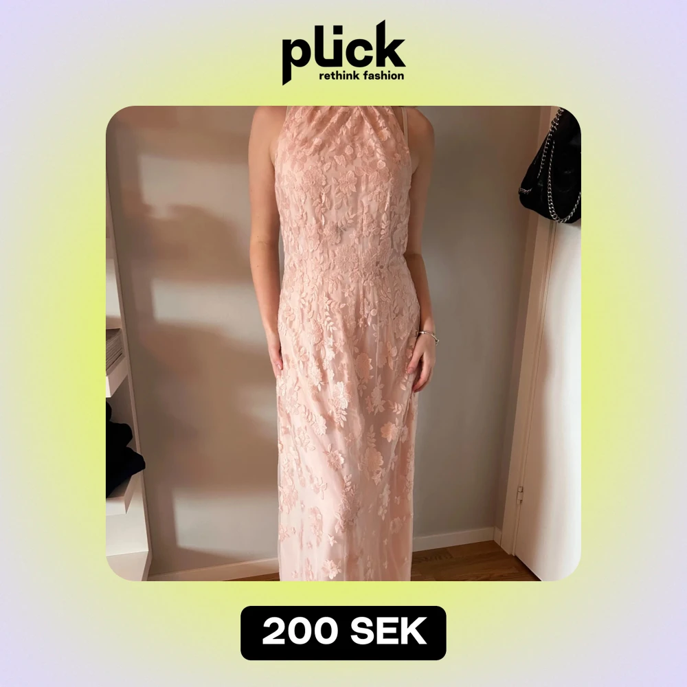 Elegant rosa långklänning från Esprit med vackra broderade blommor. Klänningen har en ärmlös design och en smickrande passform. Perfekt för speciella tillfällen. Den är heltäckande och man ser inte igenom den. Har burit 1 gång på balen, fläcken syns knappast.