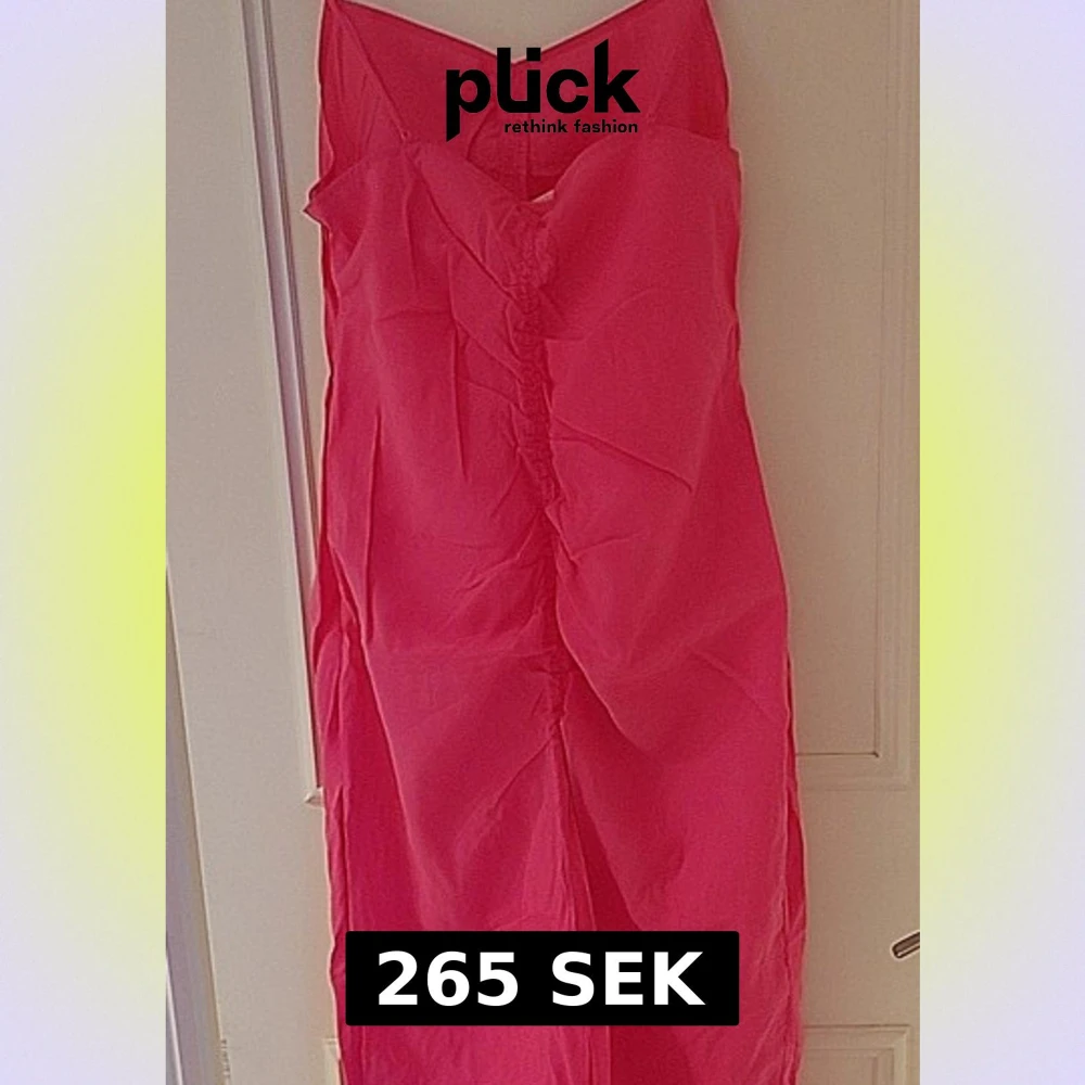 Snygg rosa långklänning från H&M Conscious med smala axelband och rynkade detaljer framtill. Klänningen har en rak siluett och är tillverkad av mjukt och lätt material med 78% tencel lyocell. Perfekt för dig som gillar färgstarka och trendiga plagg.