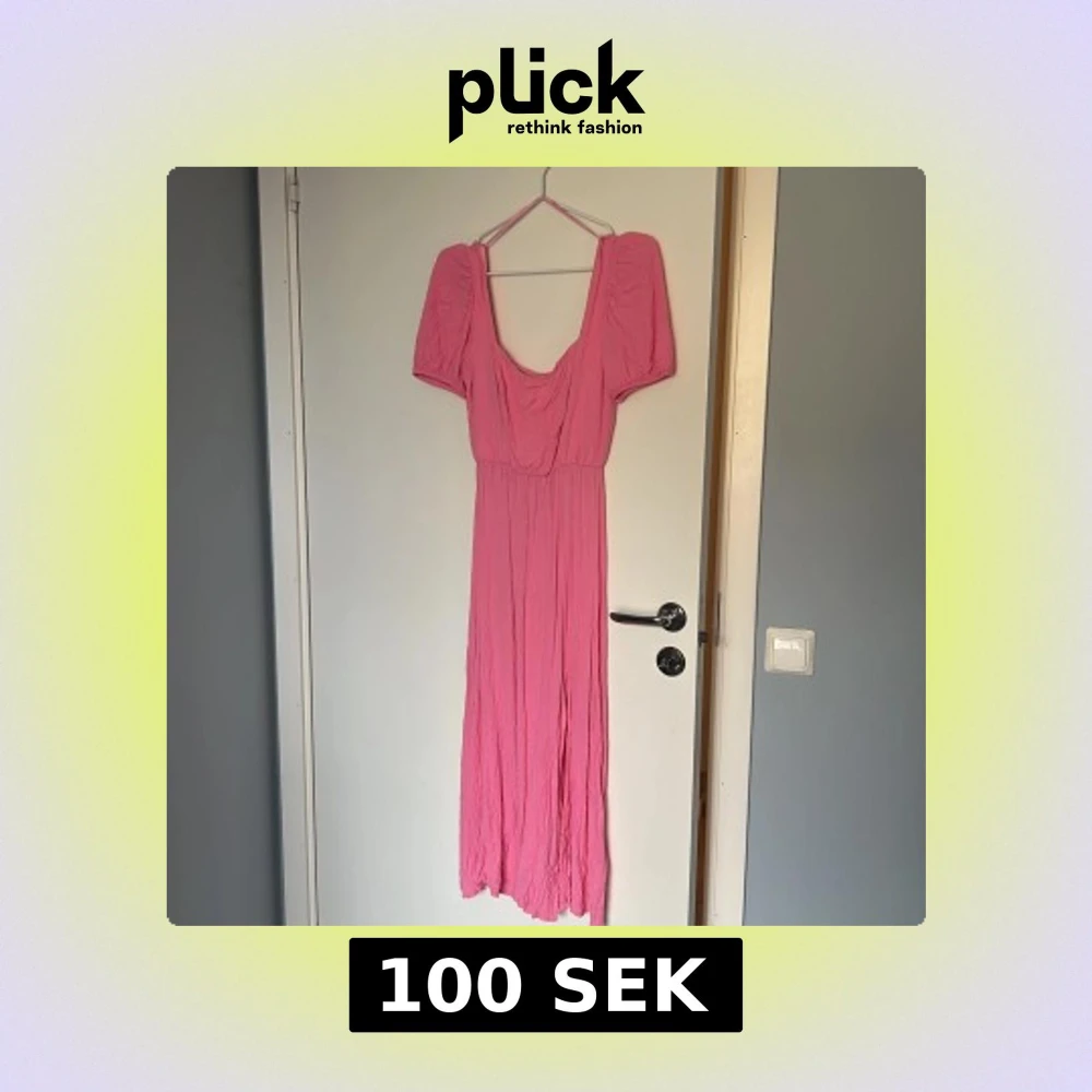 Säljer en rosa långklänning från Stradivarius med puffiga korta ärmar och snygg snörning i ryggen. Klänningen har en mjukt rynkad struktur och djup urringning både fram och bak. Perfekt för dig som vill sticka ut med färg och coola detaljer.