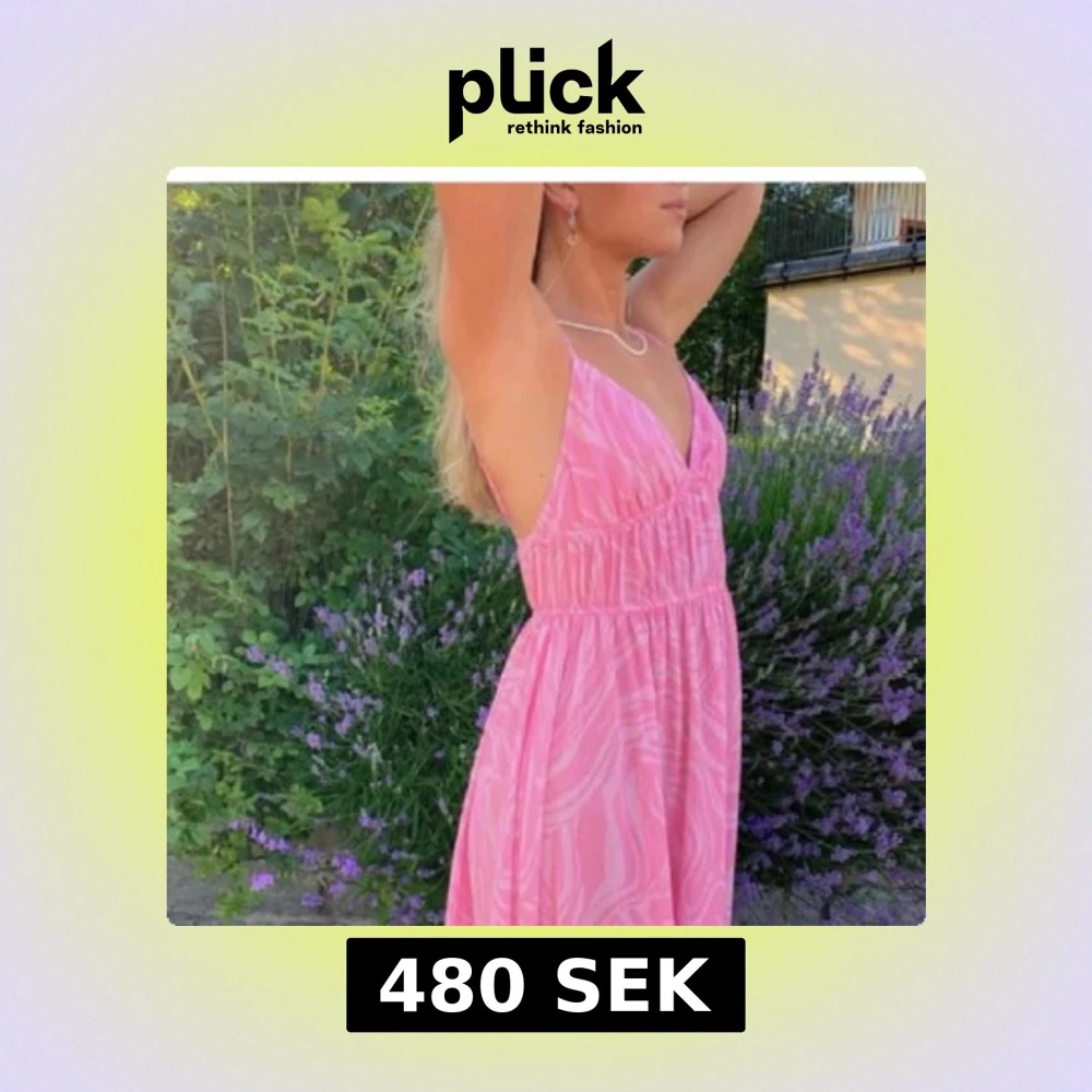 Superfin rosa långklänning med ljusa vågiga mönster och smala axelband. Klänningen har v-ringning och markerad midja för en snygg siluett. Perfekt för sommarens alla tillfällen och ger en fräsch och feminin look.