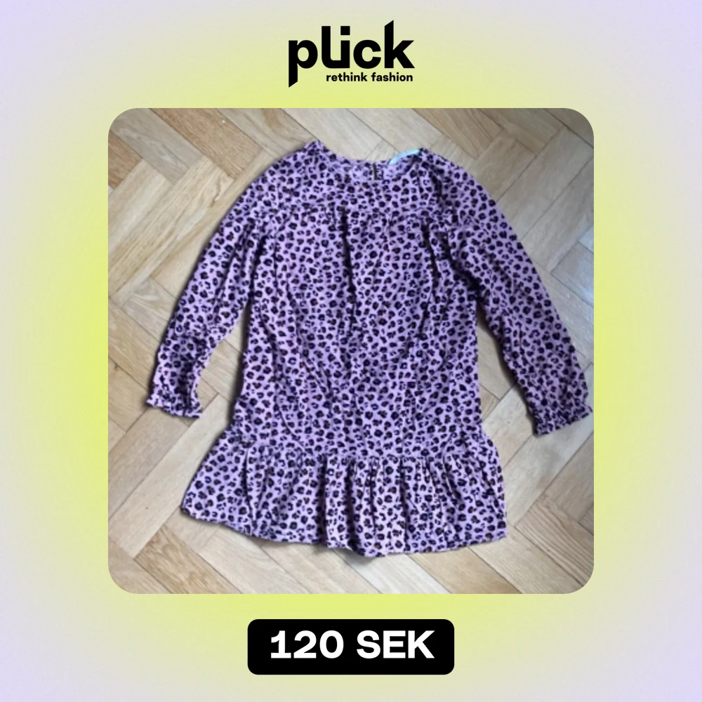 Det är en rosa leopardmönstrad klänning från H&M i storlek 140.