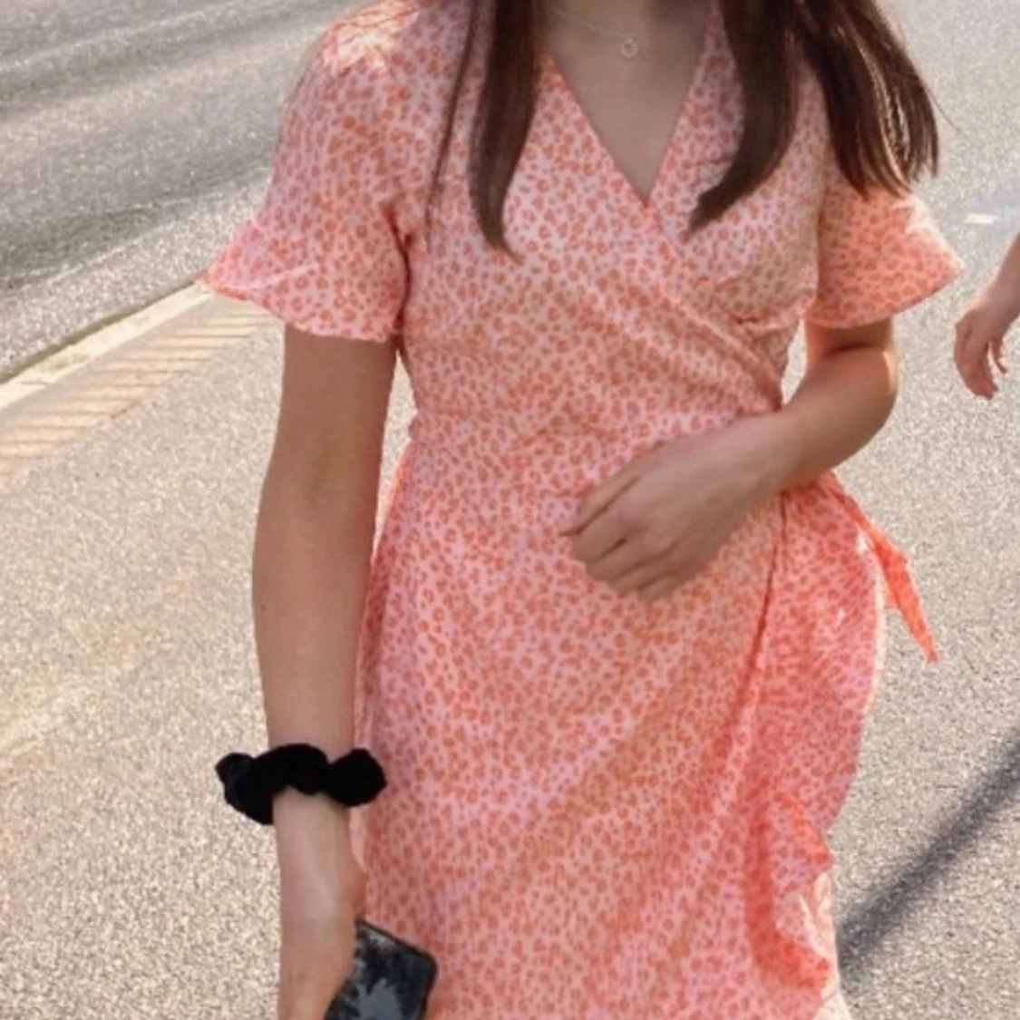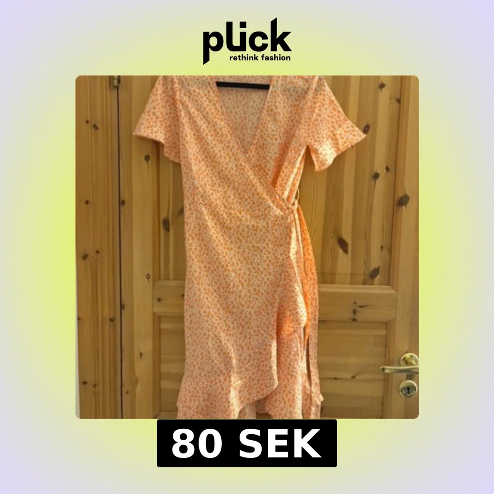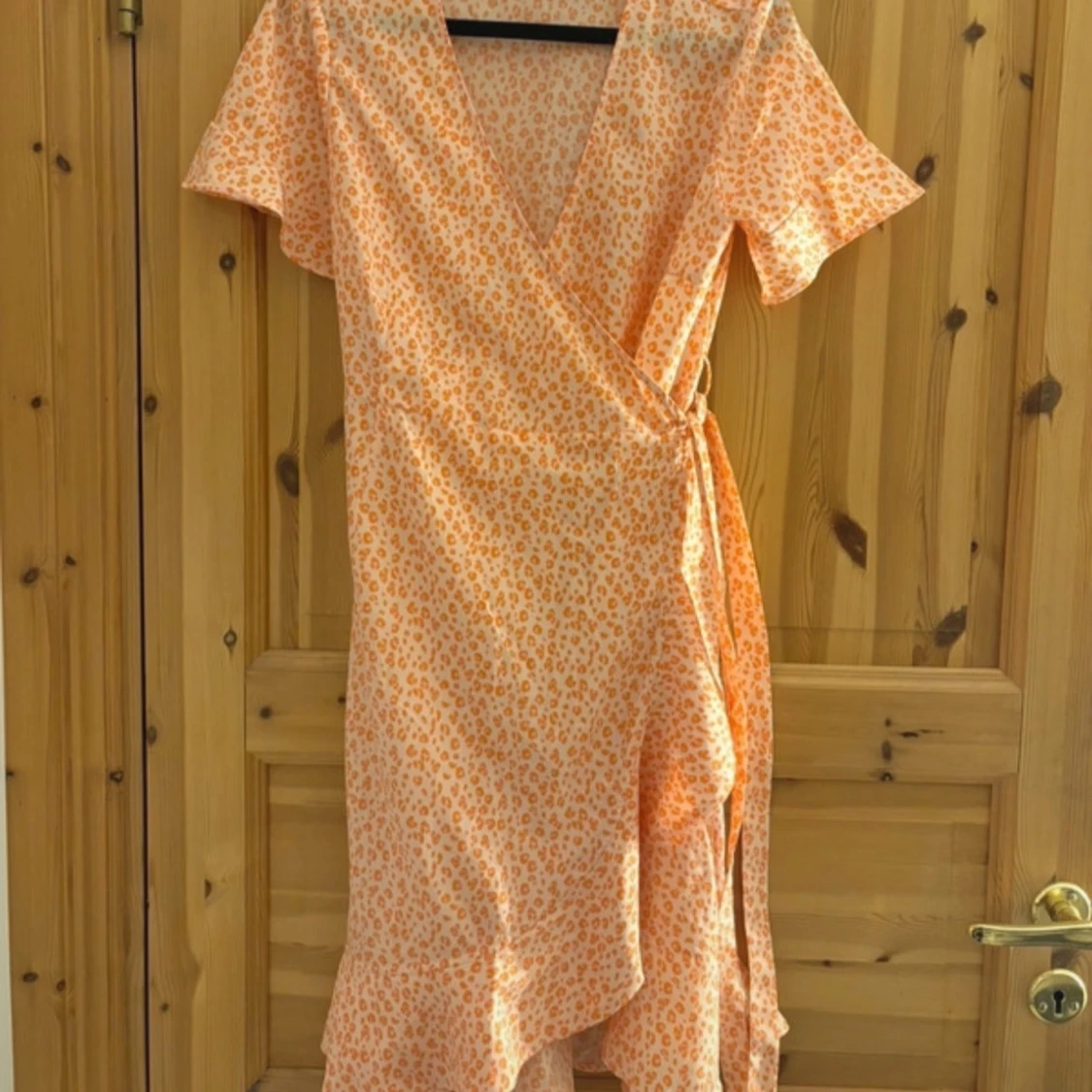 Säljer en söt orange omlottklänning med leopardmönster. Klänningen har korta ärmar och en v-ringad design som ger en feminin touch. Perfekt för sommarens varma dagar! 🧡